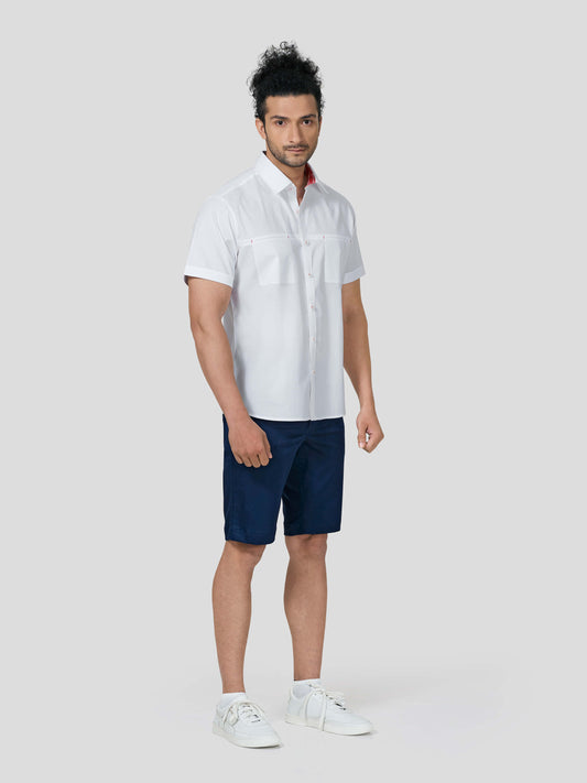 Flair Short Sleeve Contrast Trim Untuck Fit ShirtDESIGN Flair : Your real personality has a stylish flair. Did you know this? Try this solid white short sleeve shirt designed with bias check collar lining, welt pocket, cut & sew cuffs and contrast stitch buttons and let others admire your stylish flair In...