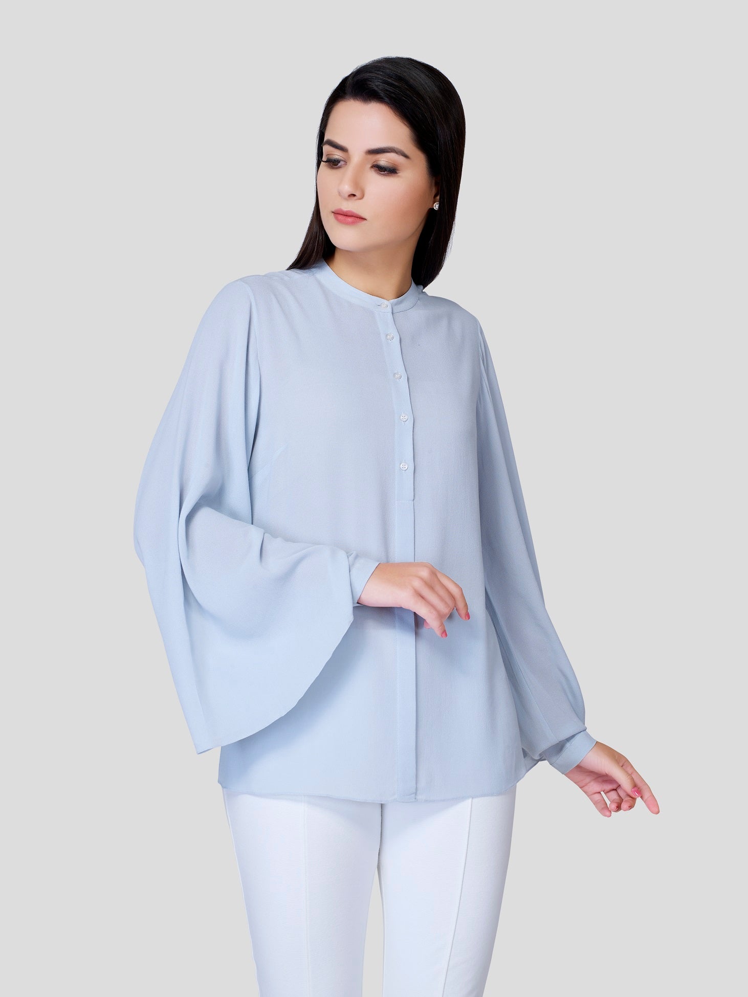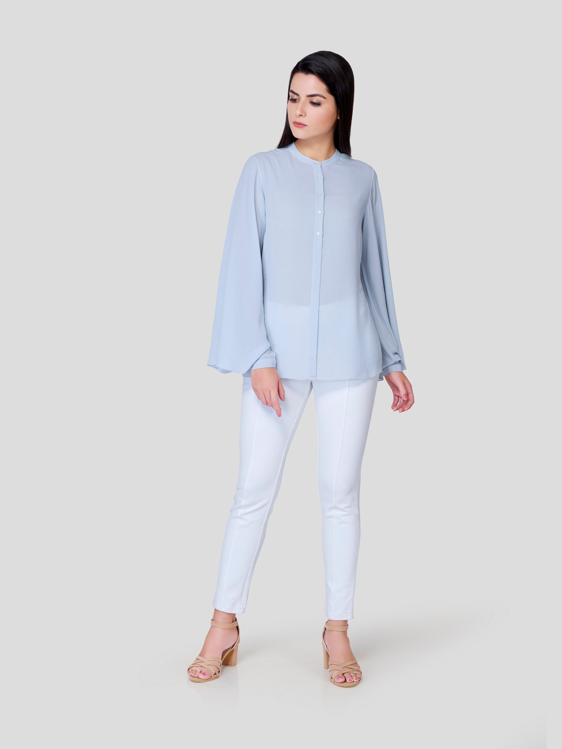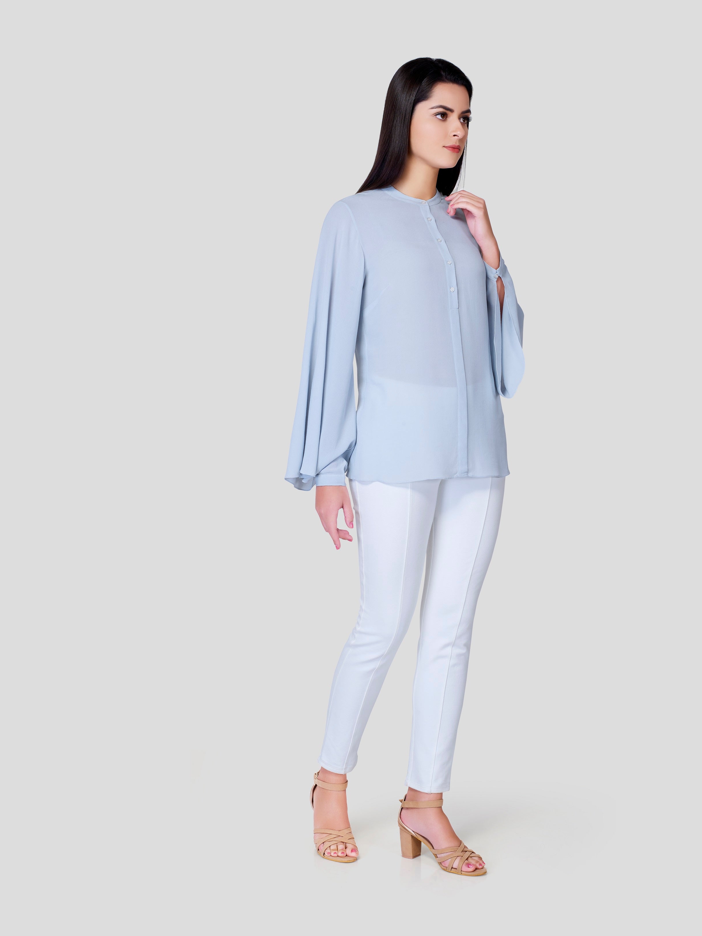 Drizzle - Fallen like a drizzle all over, no tieing and no gripping feel - flows freely on your body with flared sleeves, front buttons and simple flat neck. Experience the surroundings and feel free to show, who you are