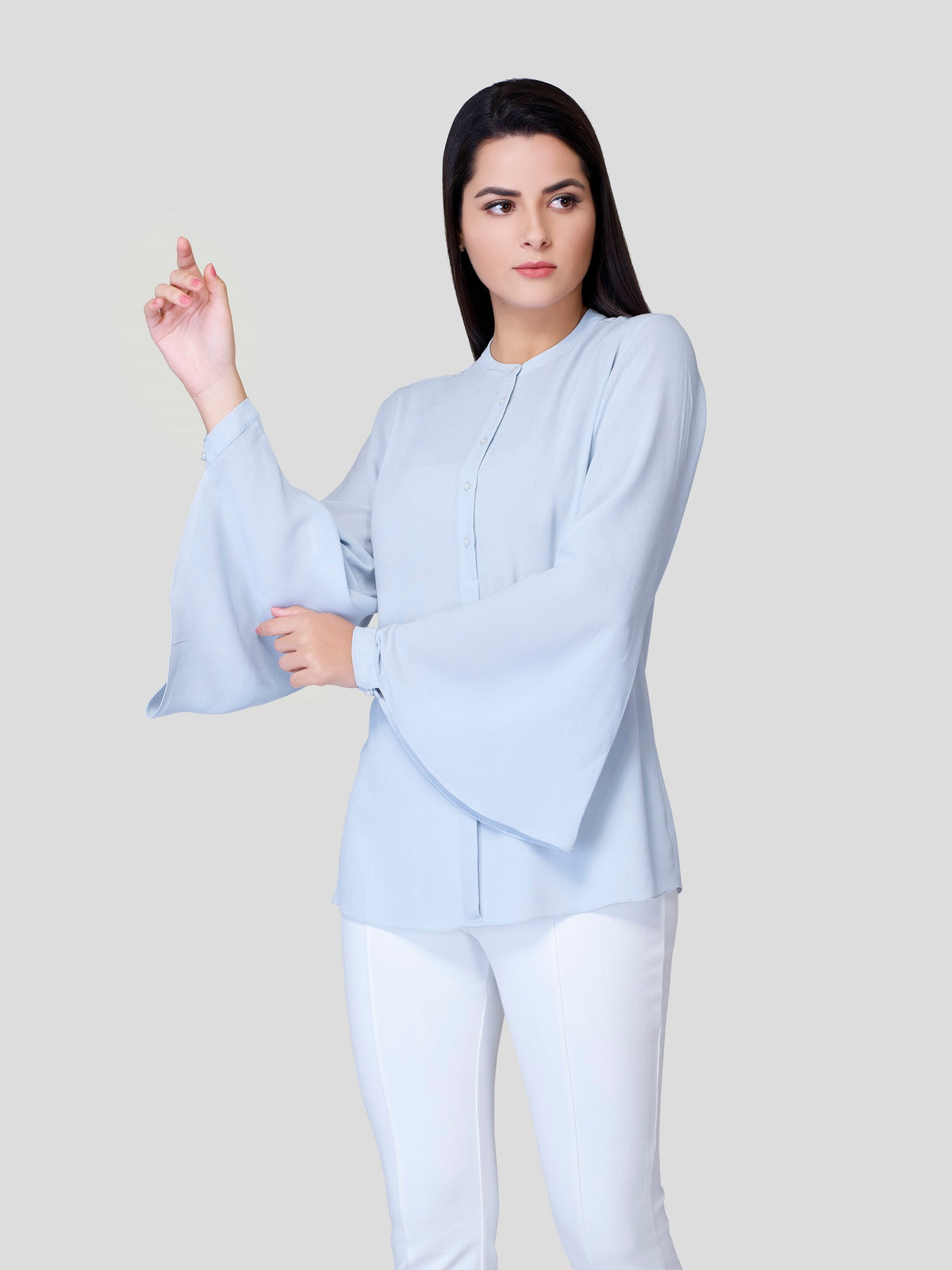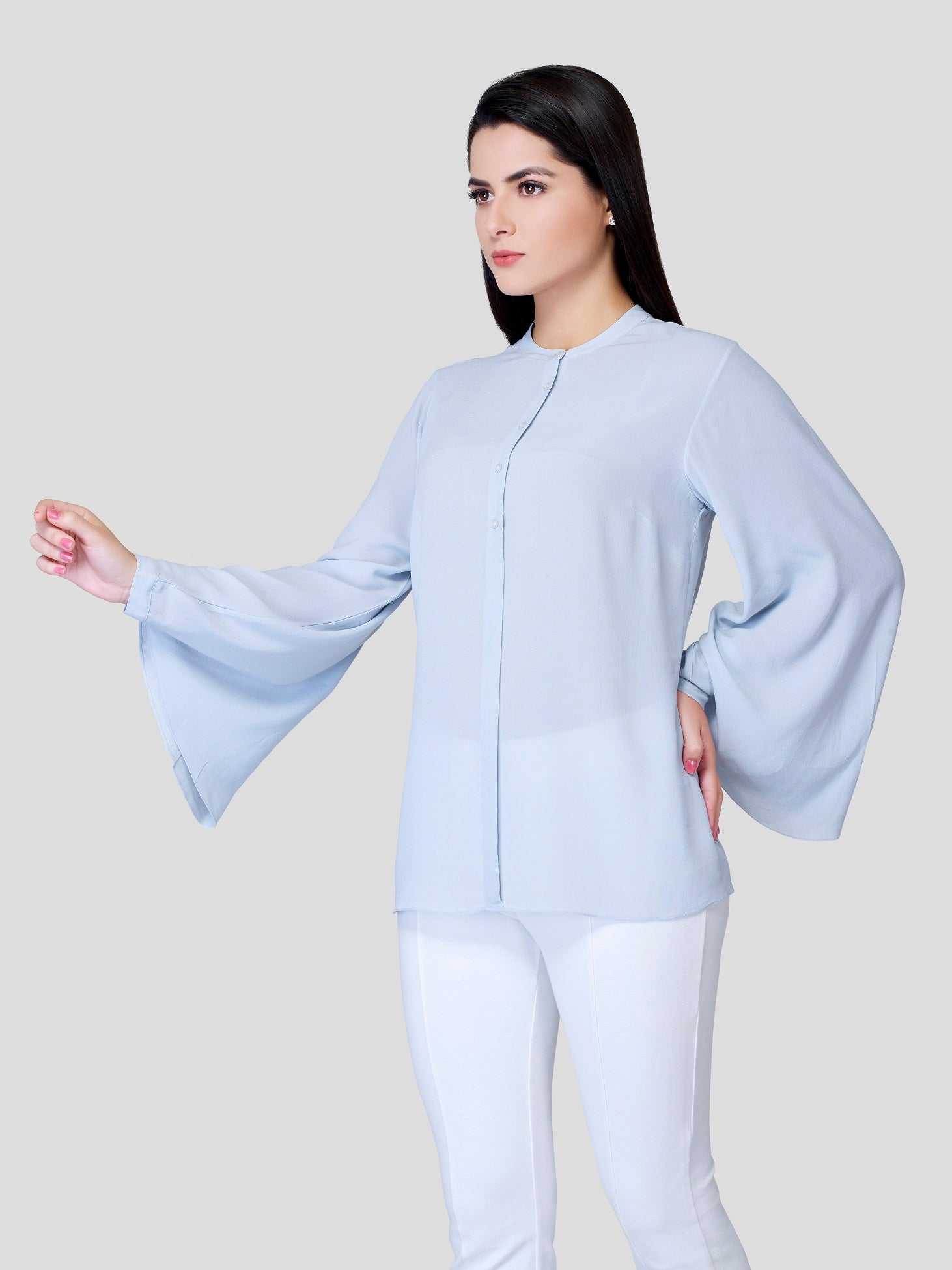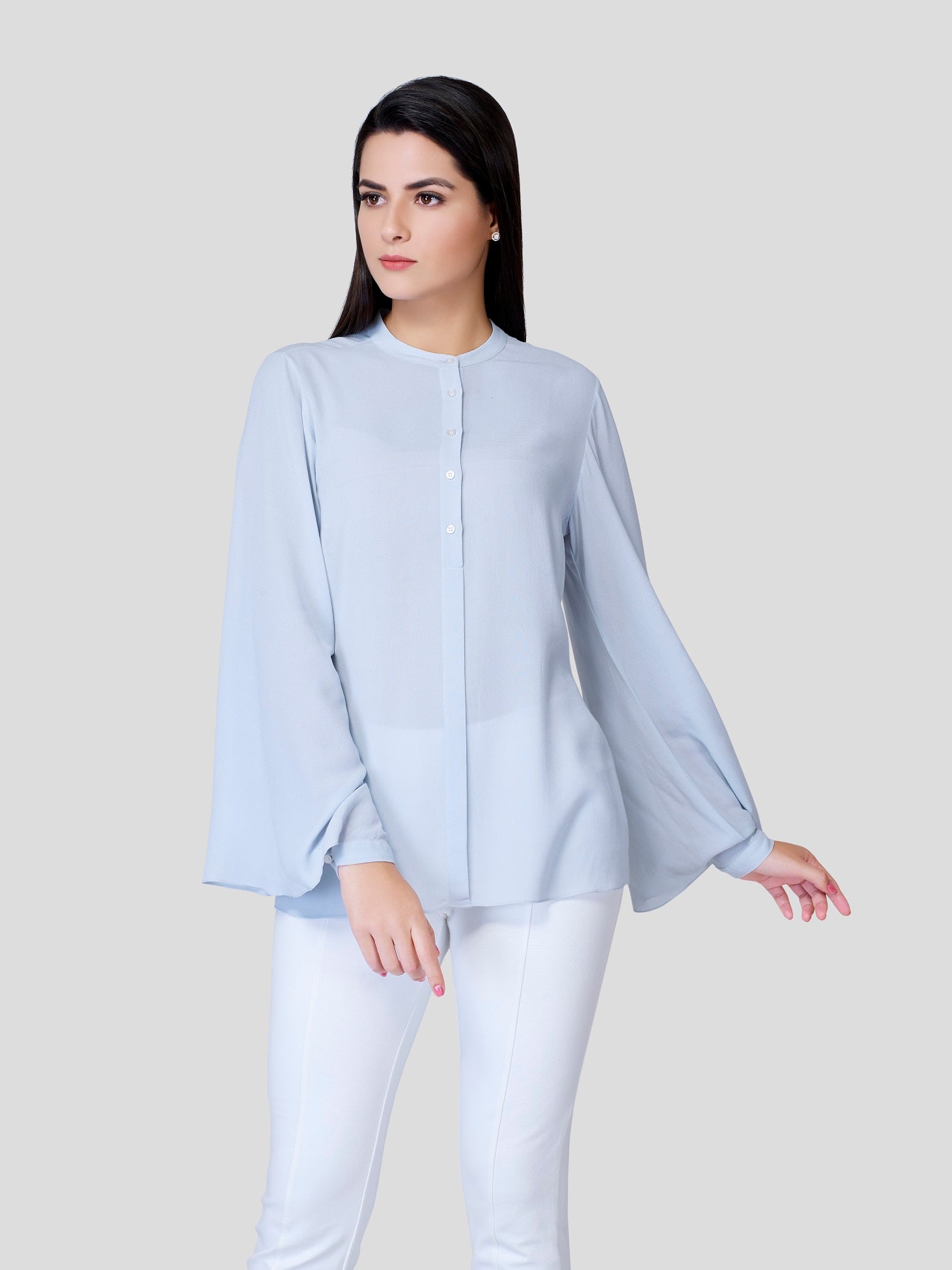 Drizzle - Fallen like a drizzle all over, no tieing and no gripping feel - flows freely on your body with flared sleeves, front buttons and simple flat neck. Experience the surroundings and feel free to show, who you are