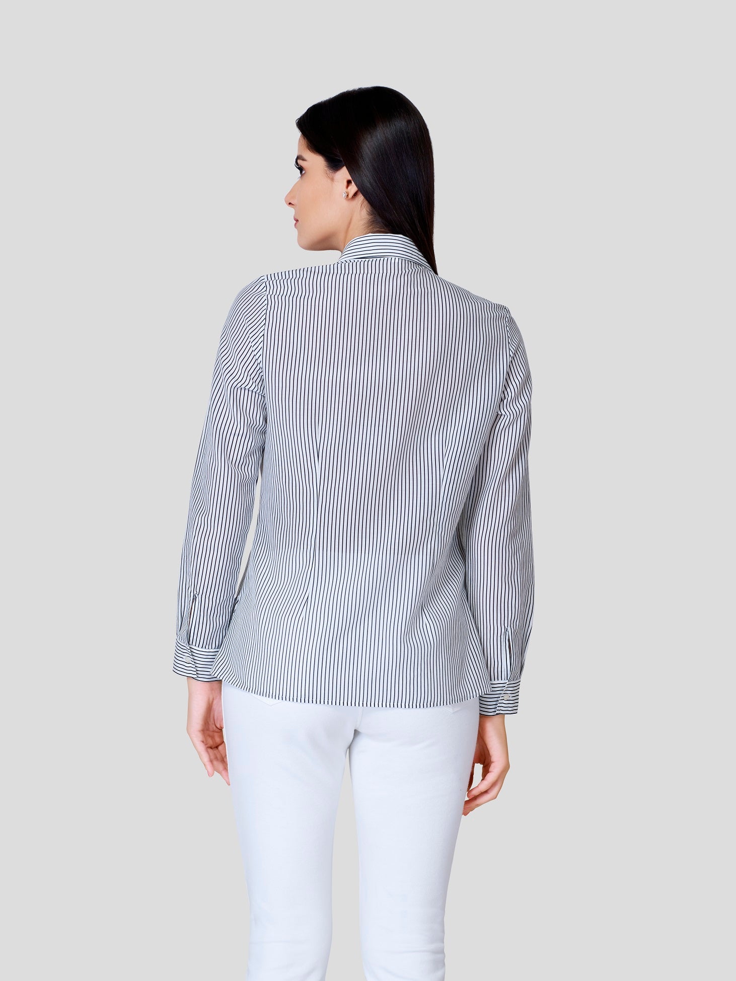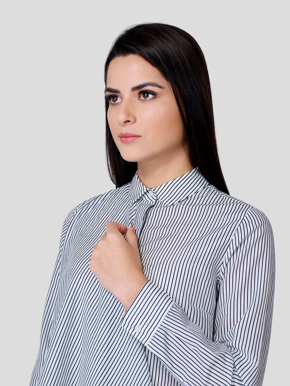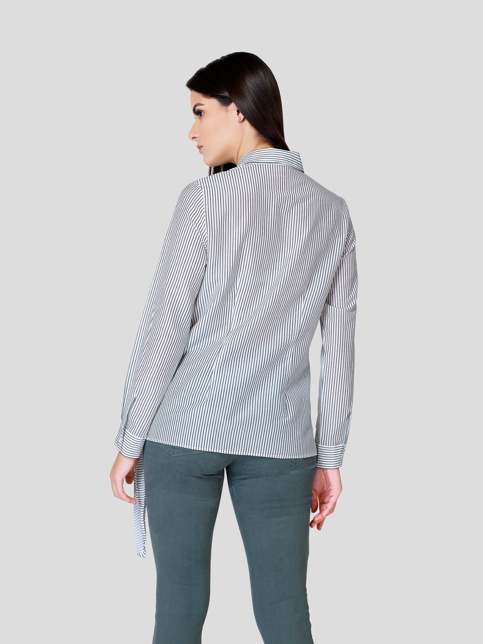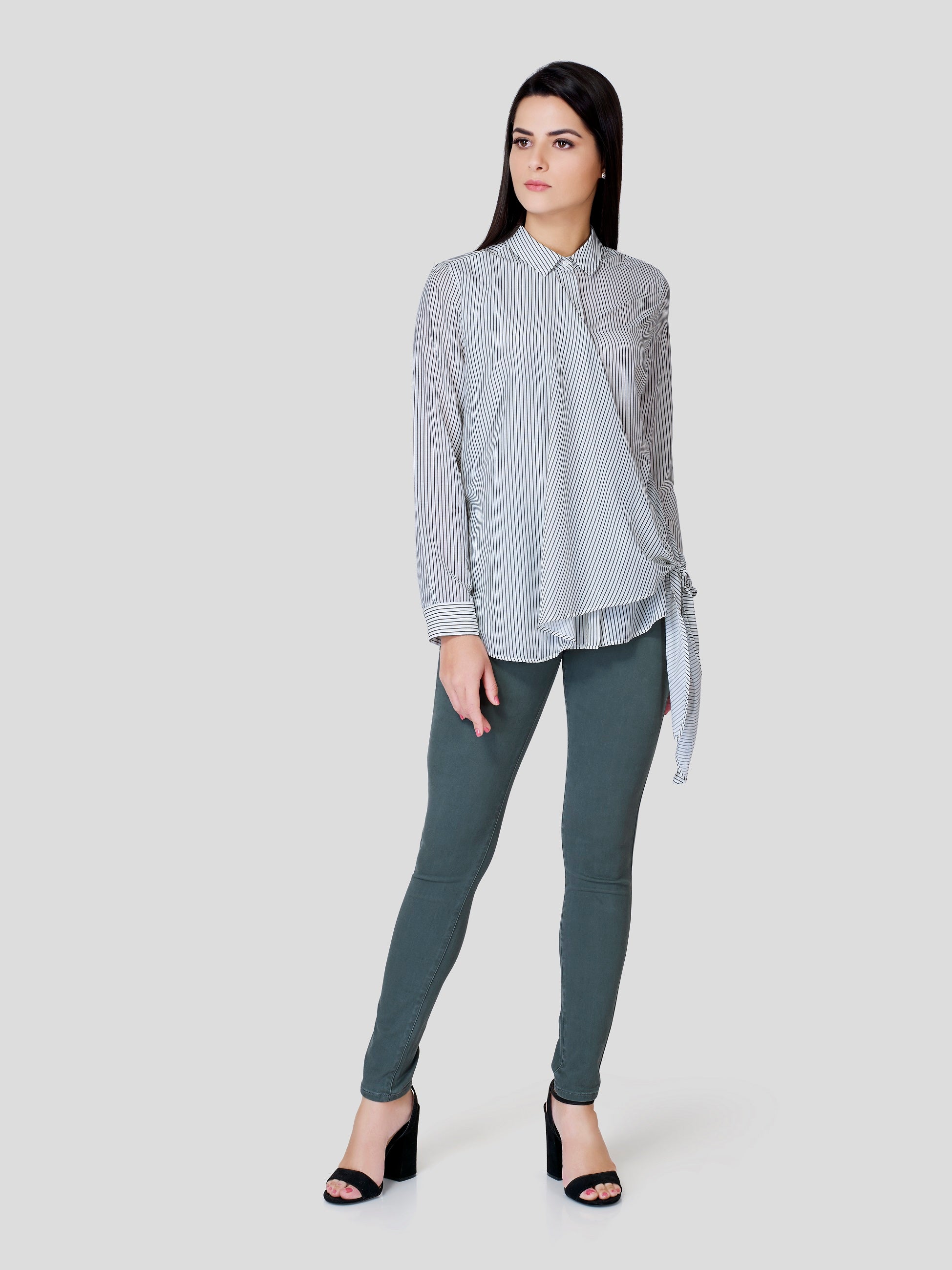 Knotty Comfort - Knotted and draped front buttoned shirt to allow you to look tidy, stylish and creative without compromising on easiness. The lusturous stripped fabric and silky affect used for added richness.
