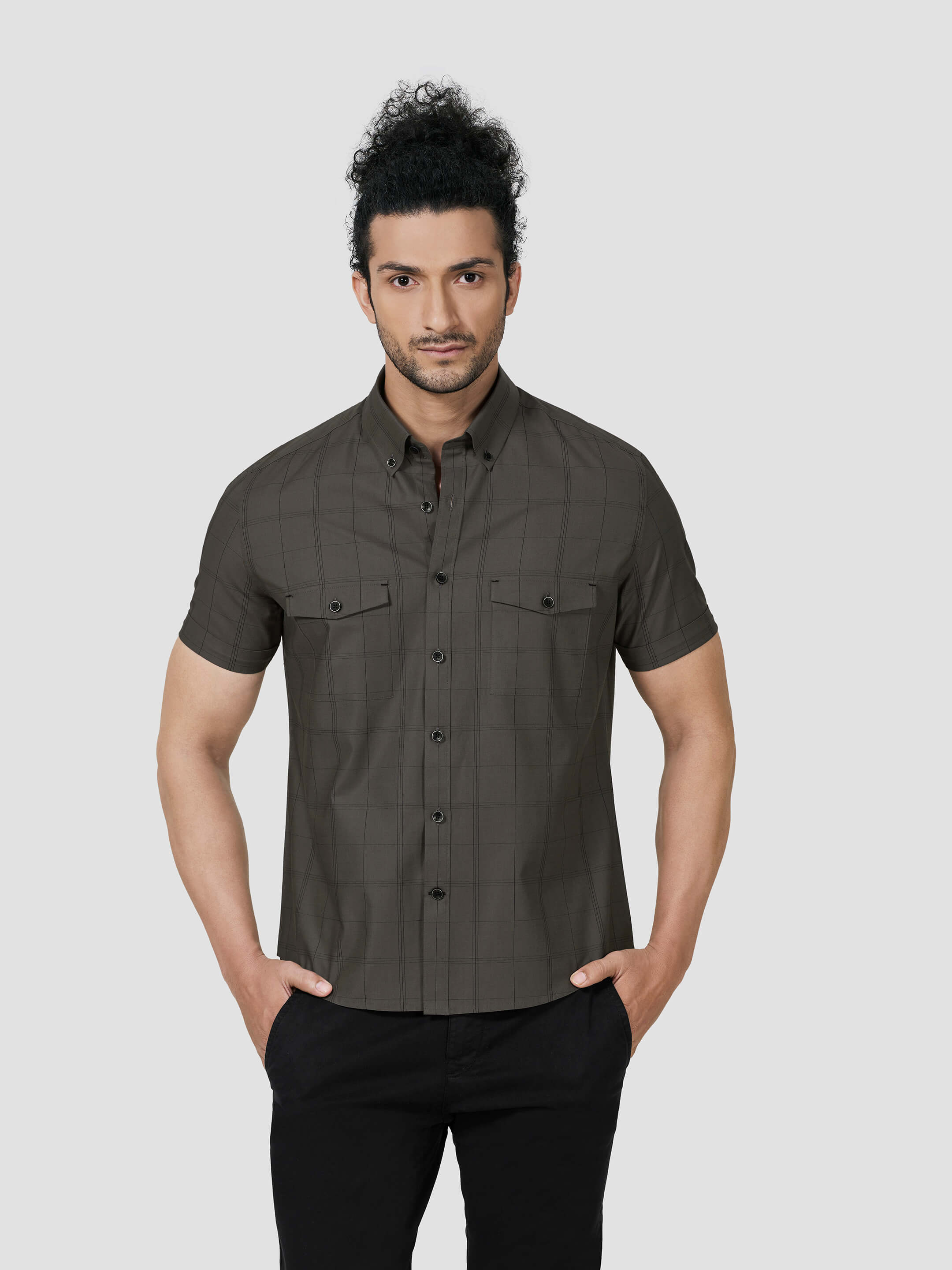 Impulse : Quick, sharp or prolonged, it is the change in momentum in the matter of time which decides the net impulse which matters to establish an impact. These short sleeve, untuck fit, impulse shirts designed in checkered natural cotton fabric take no time in leaving their impact over onlookers. Crafted with button down collar, buttoned flap pockets, turned-up sleeves and high low bottom hem, they are quick to establish your casually formal attitude in untuck fit style.