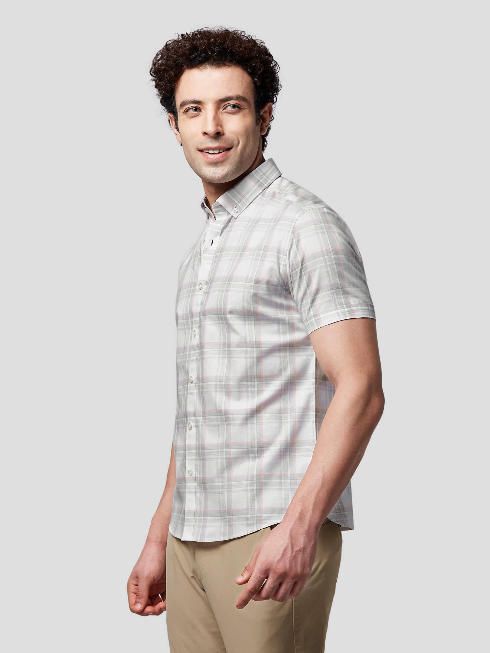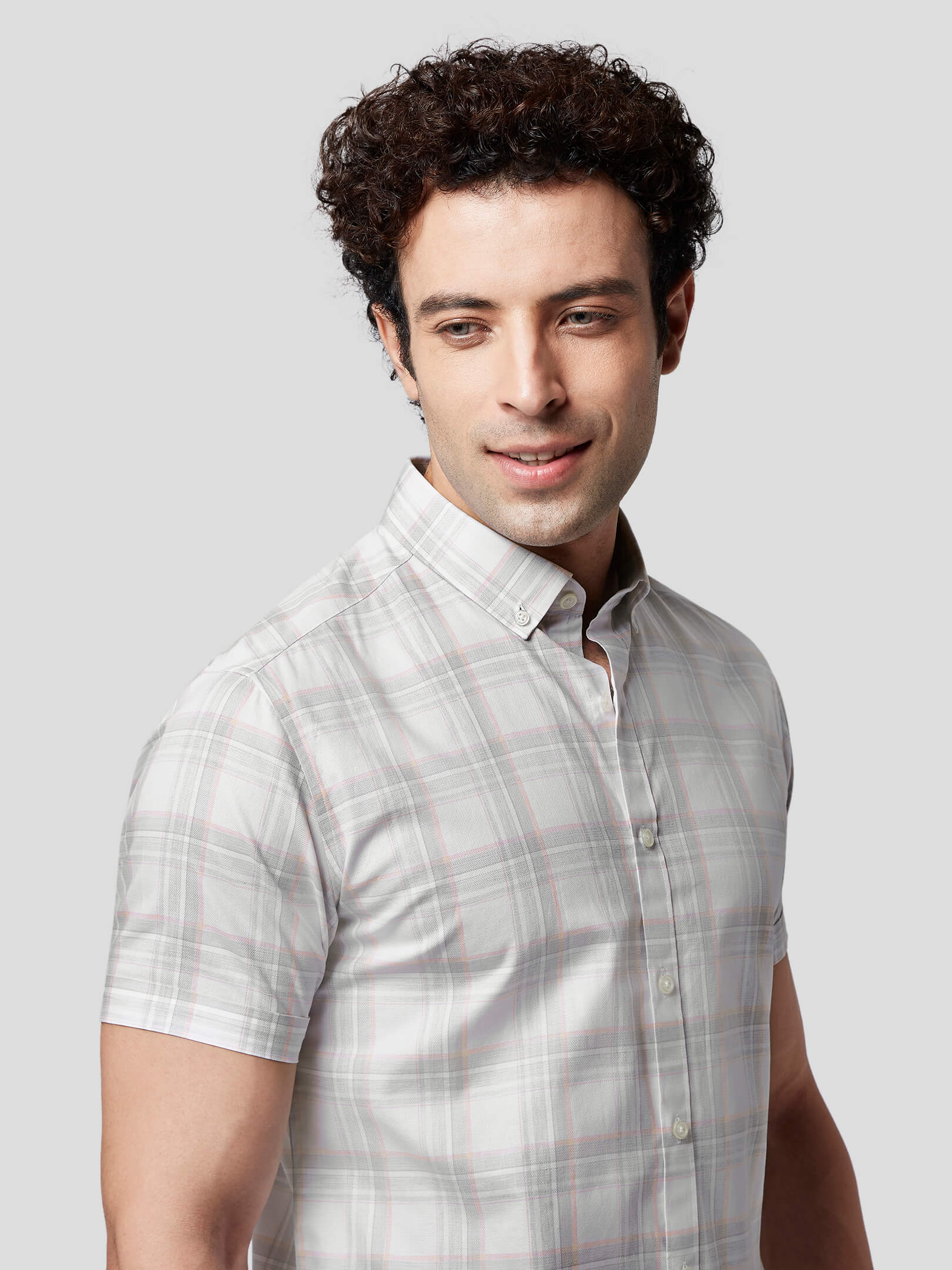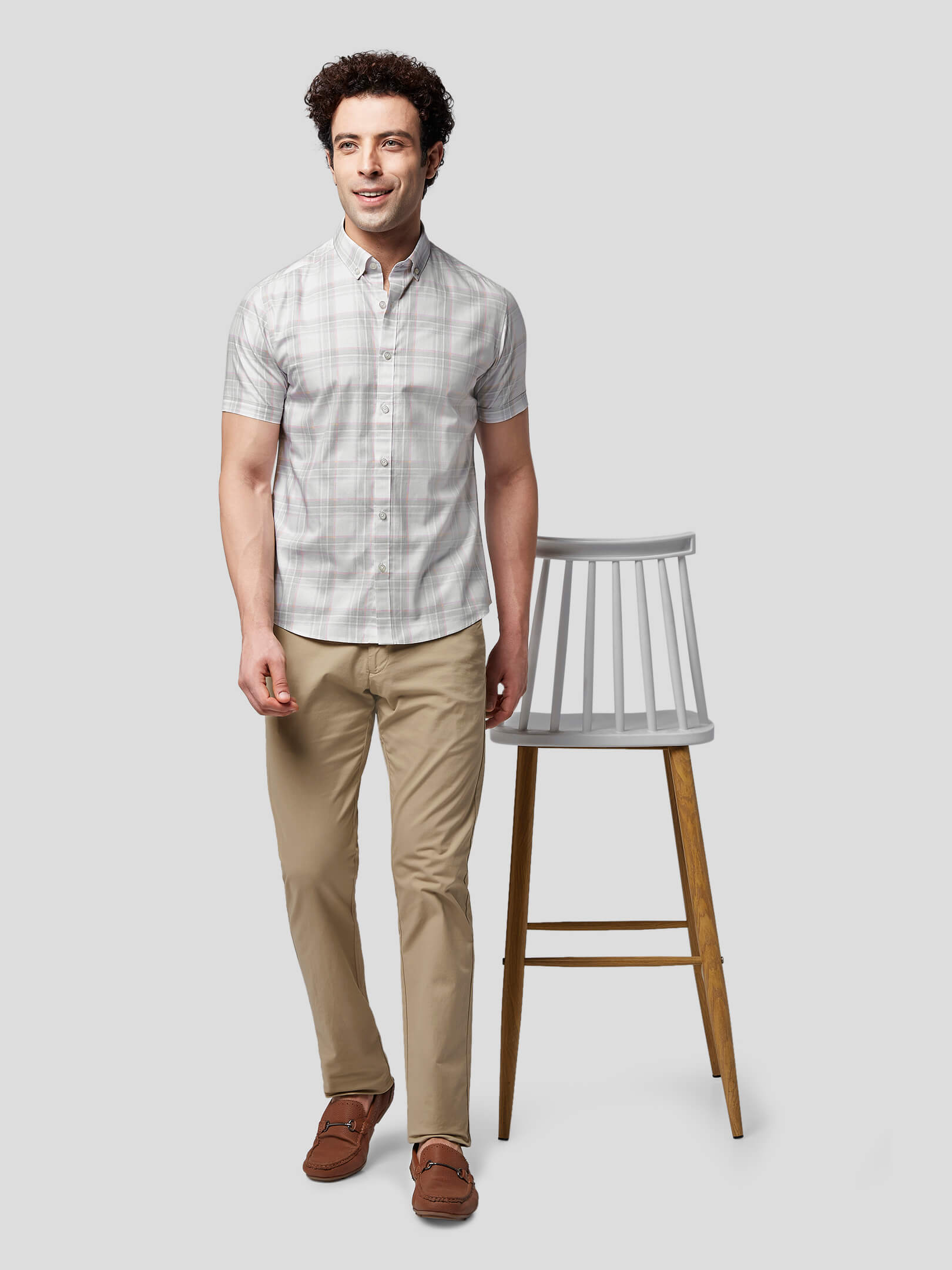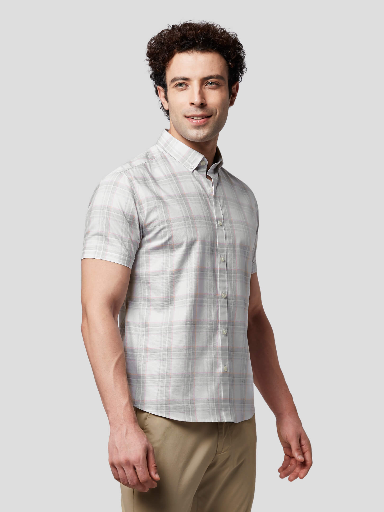 Dalliance : Feeling good while amusing oneself is possible with Dalliance short sleeve OCBD checkered shirt which is designed with classic button-down collar, American placket, short sleeves for an untuck fit style. Enjoy visual appeal with collar band lining and cuff & back shoulder yoke cut on bias for extra comfort. Celebrate nature’s vibrance in 50s natural cotton fabric weaved in pastel color with mélange yarn. You will find ease in masterly crafted design where each pattern is matched precisely, where itch free experience gives you a responsibly fashionized look.