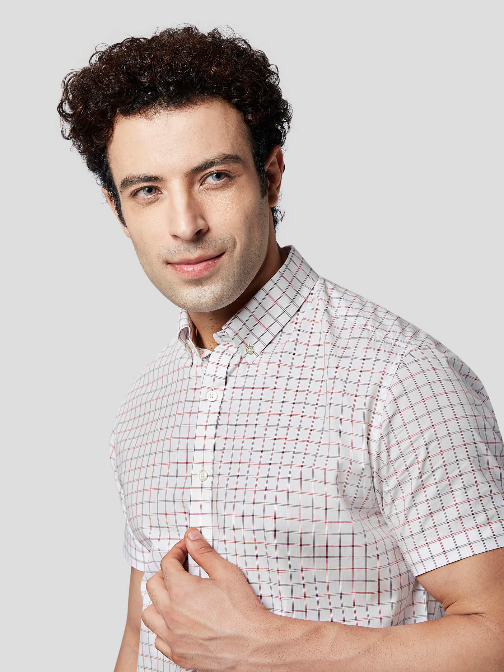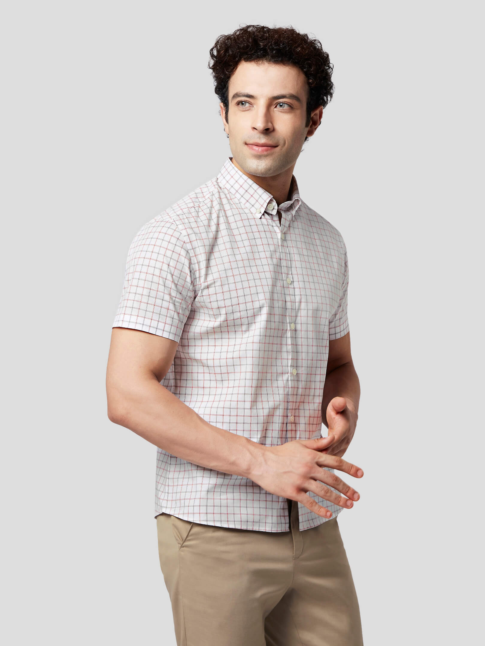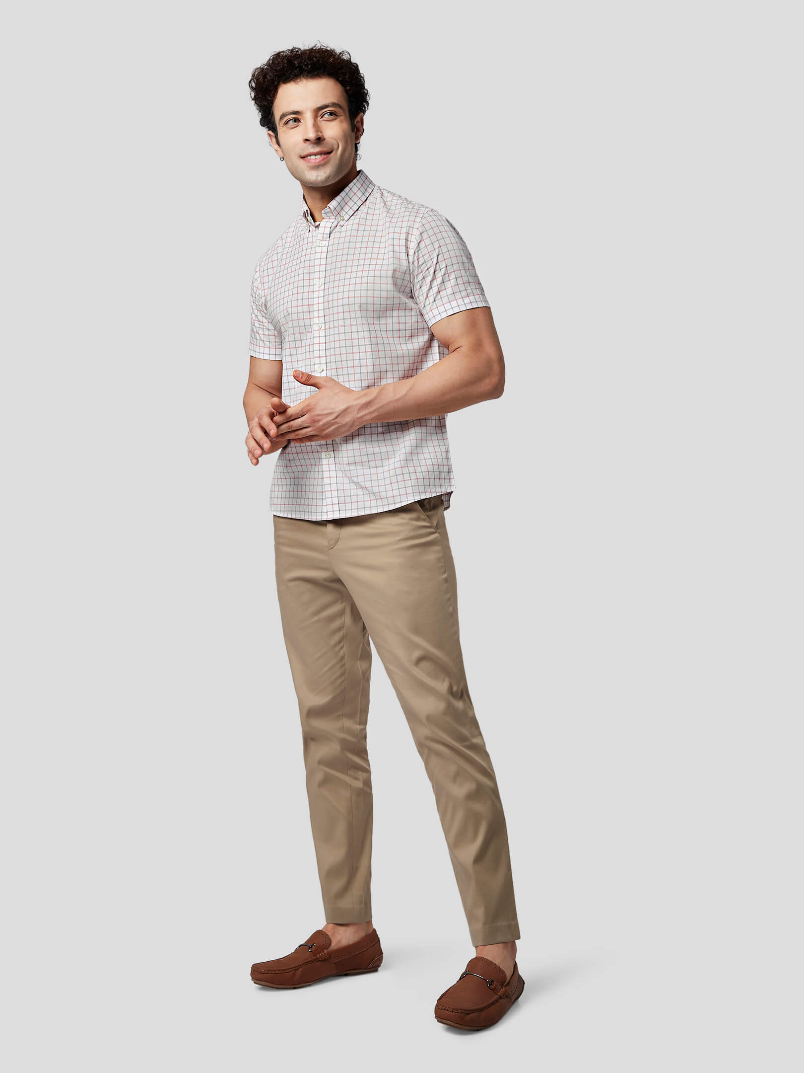 Coherence : The coherence of finest natural fabric, vibrant check pattern and casually formal style has been used to create a fashionizing charm in this untuck fit Shirt. Designed with button down color, flapped patch pockets and partially concealed button placket this elegant shirt maintains the coherence of formal business attitude in casual dressing style.