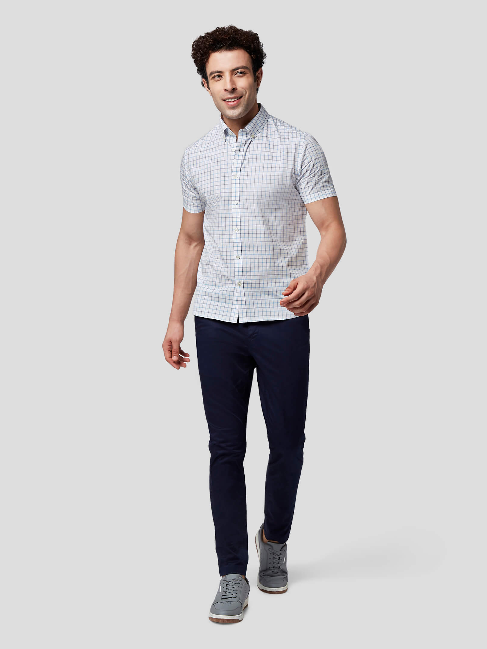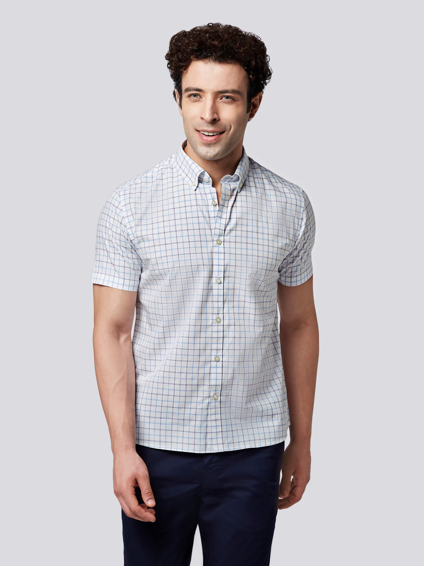 Ovation Tattersall Check Shirt which is designed with 50s natural cotton to keep you fresh and motivated. Crafted with softer button-down collar, American placket & short sleeves, this shirt gives ease of movement with bias cut shoulder design. Responsibly crafted this half sleeve untuck shirt shows artistic precision of pattern matching and gives you an itch free wearing experience.