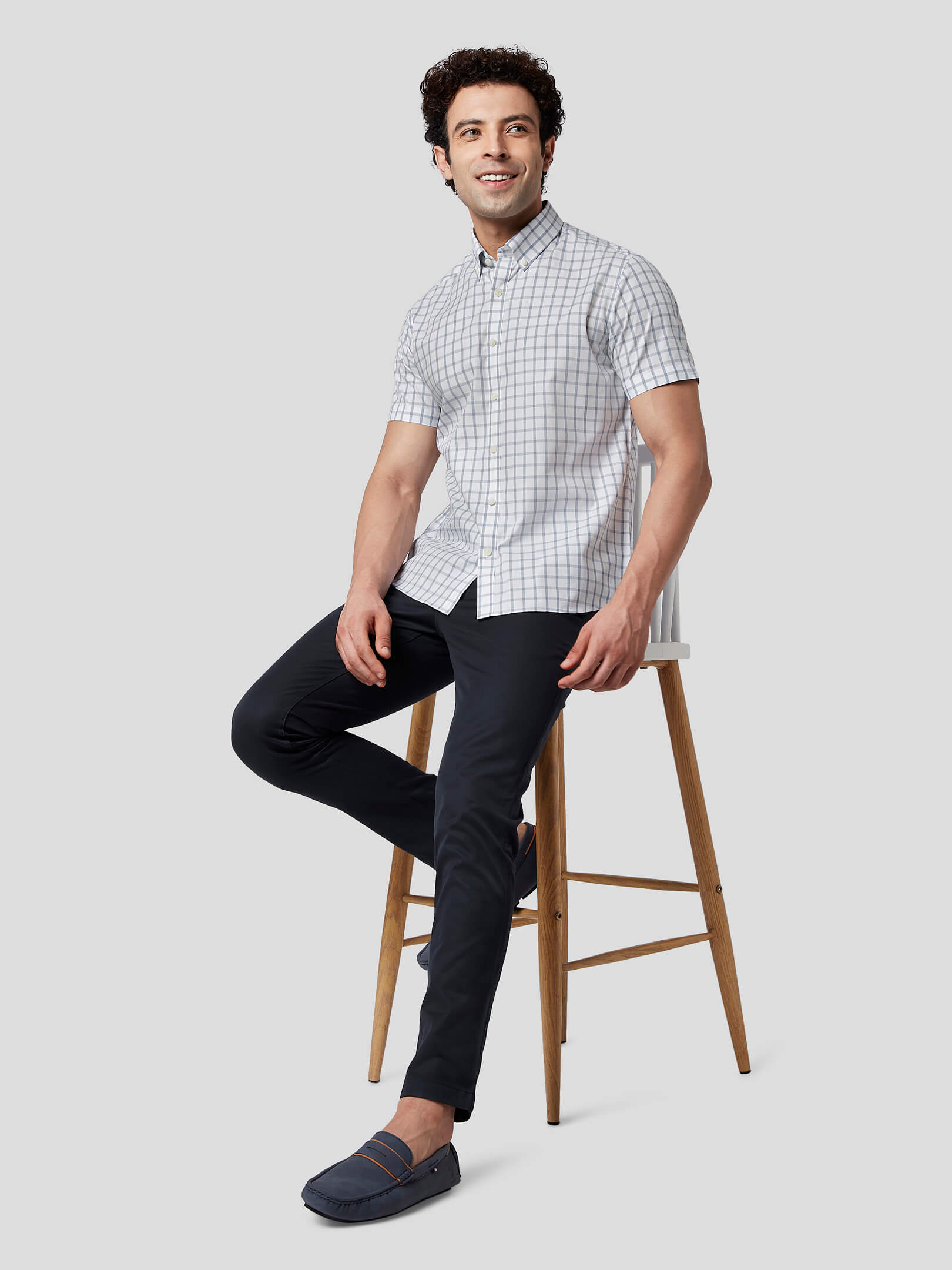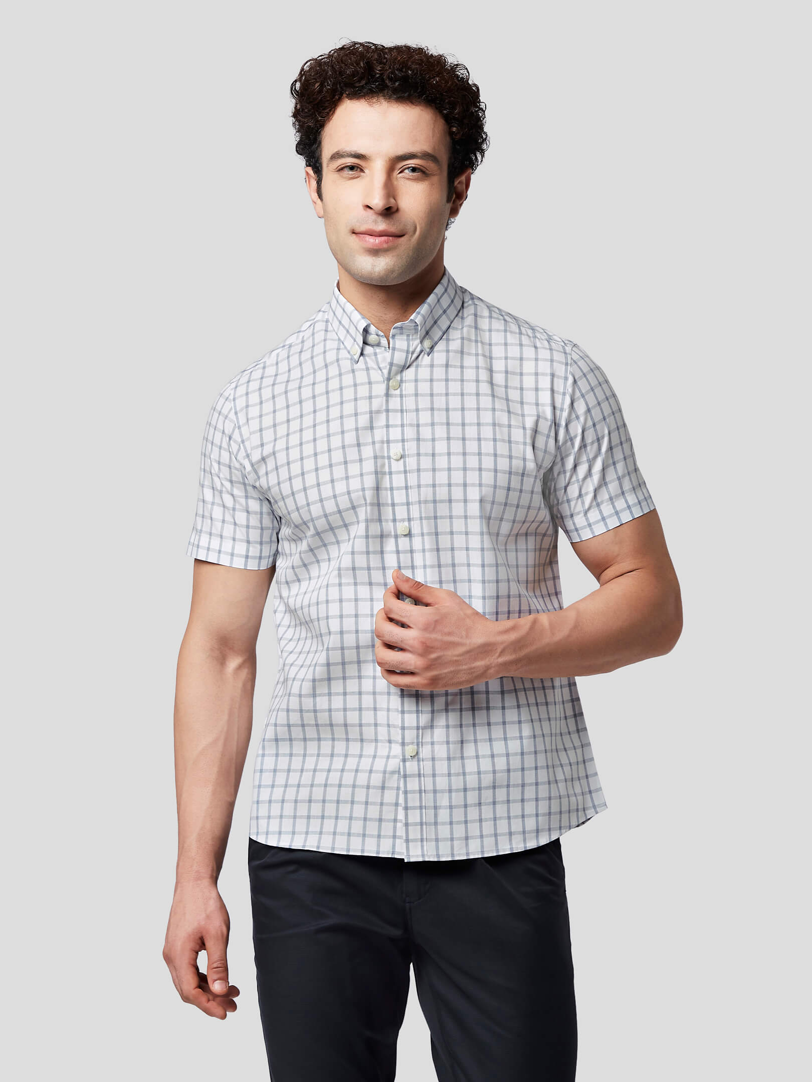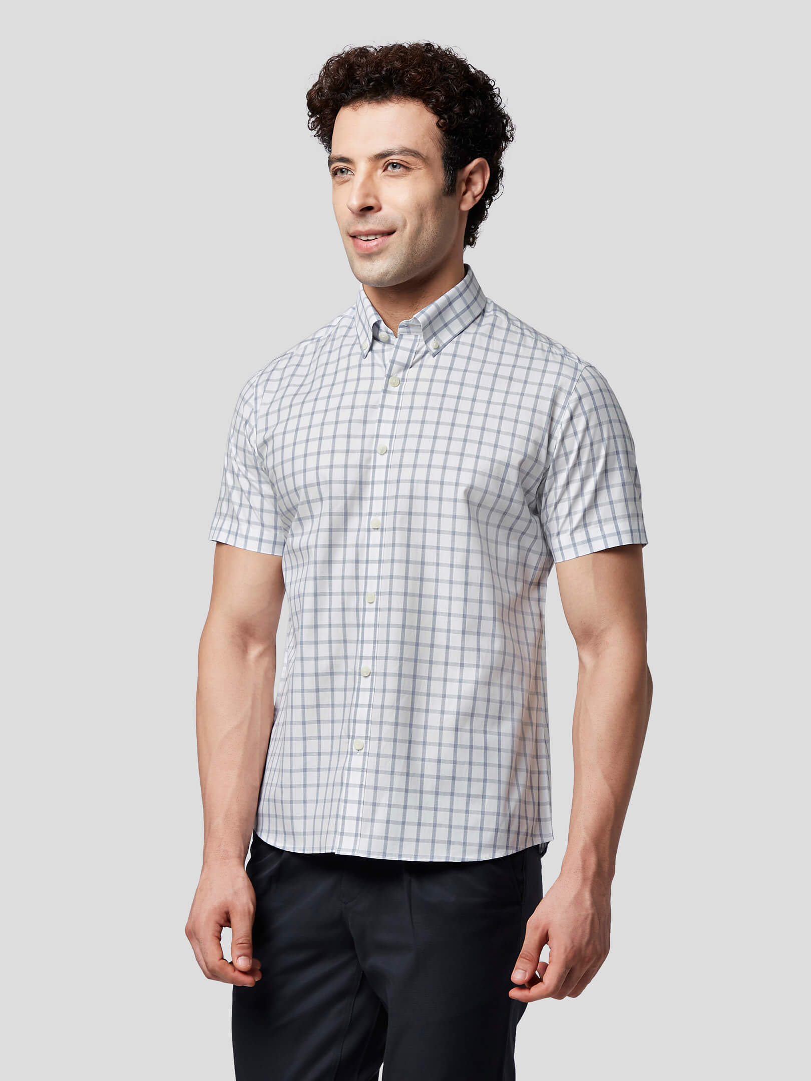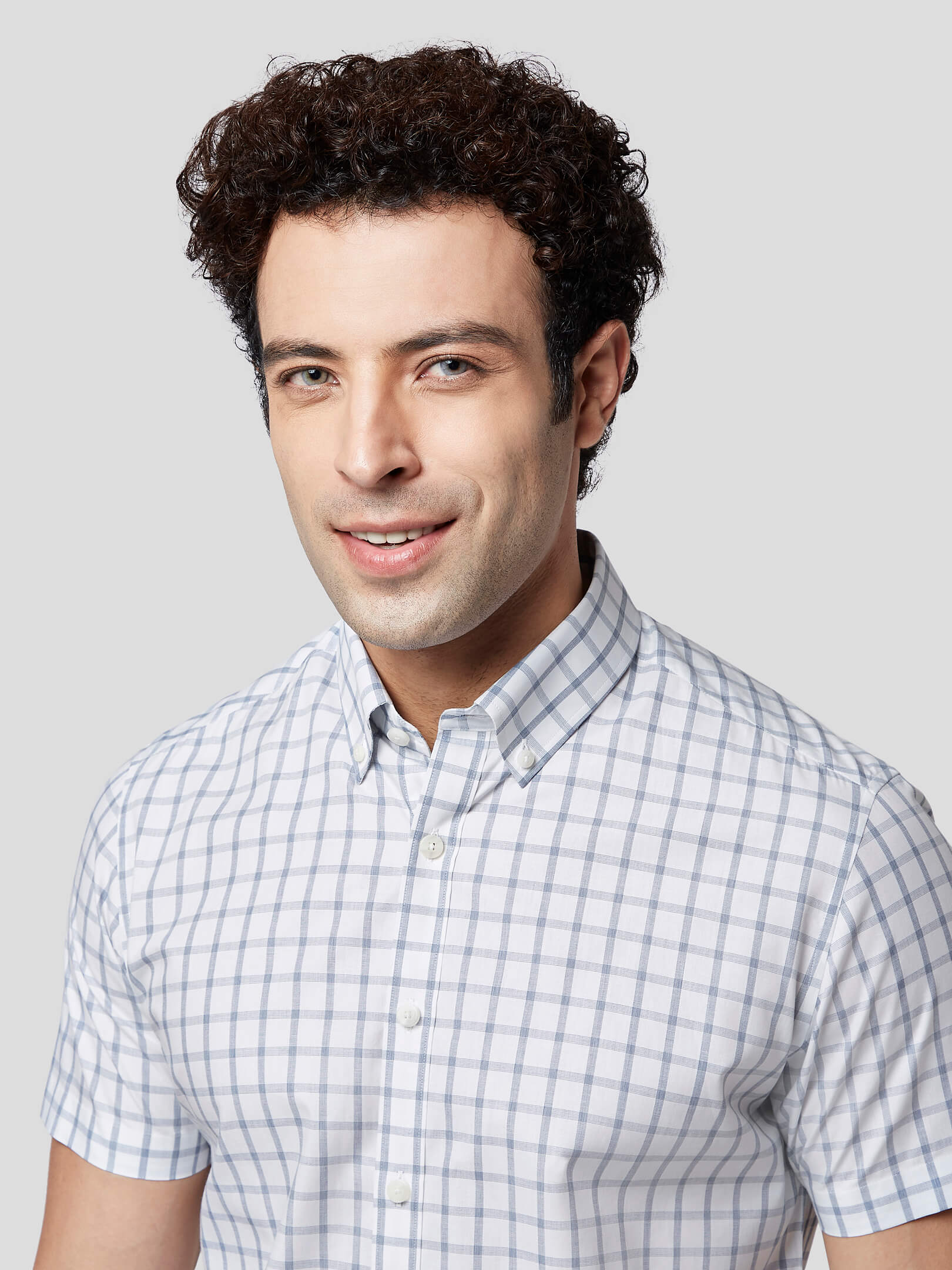 Resonance : Celebrate a look that resonates with your quality loving attitude in short sleeve check shirts designed in untucked fit style and 50s cotton fabric. Created with American plackets this shirt resonates your love for comfort and quest for excellence.