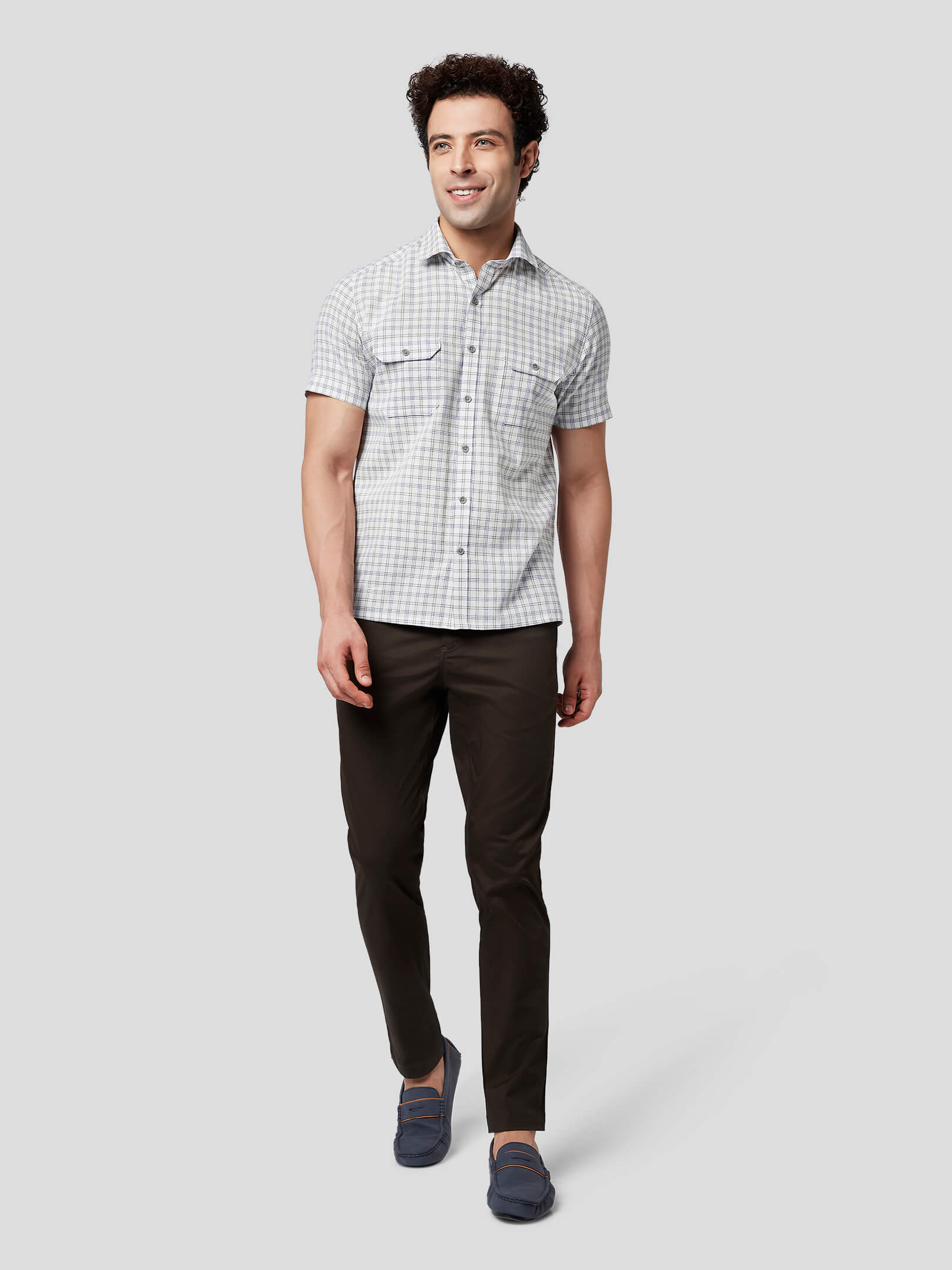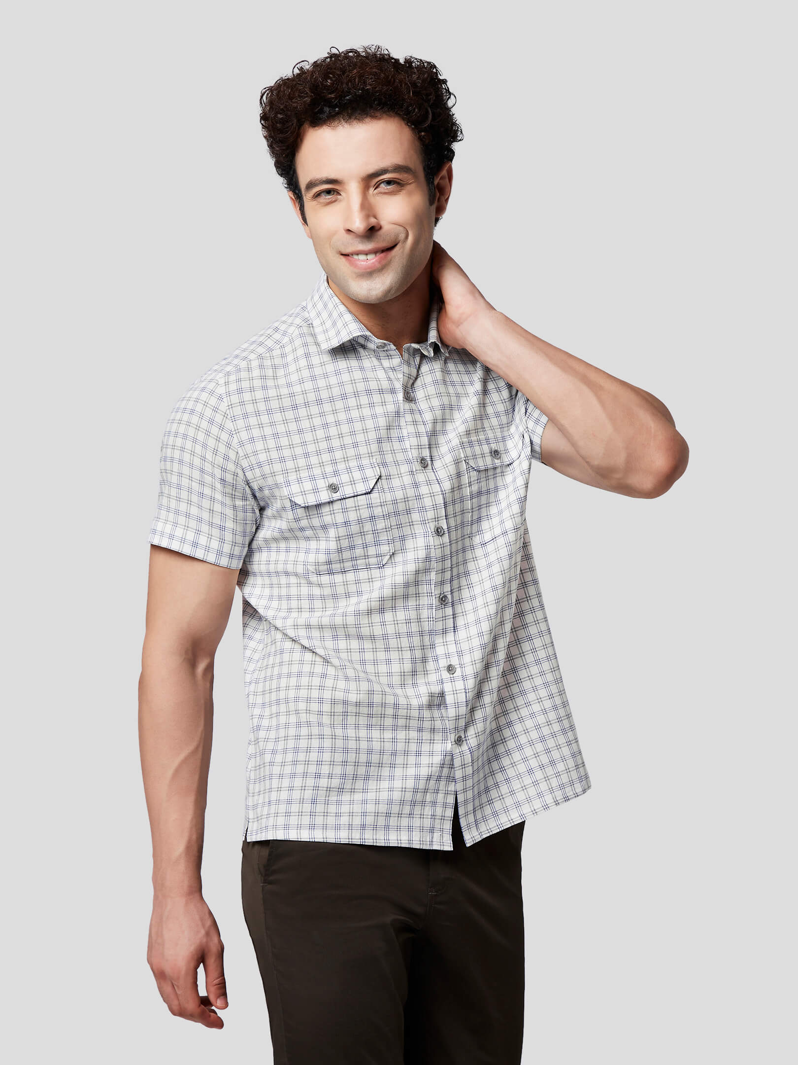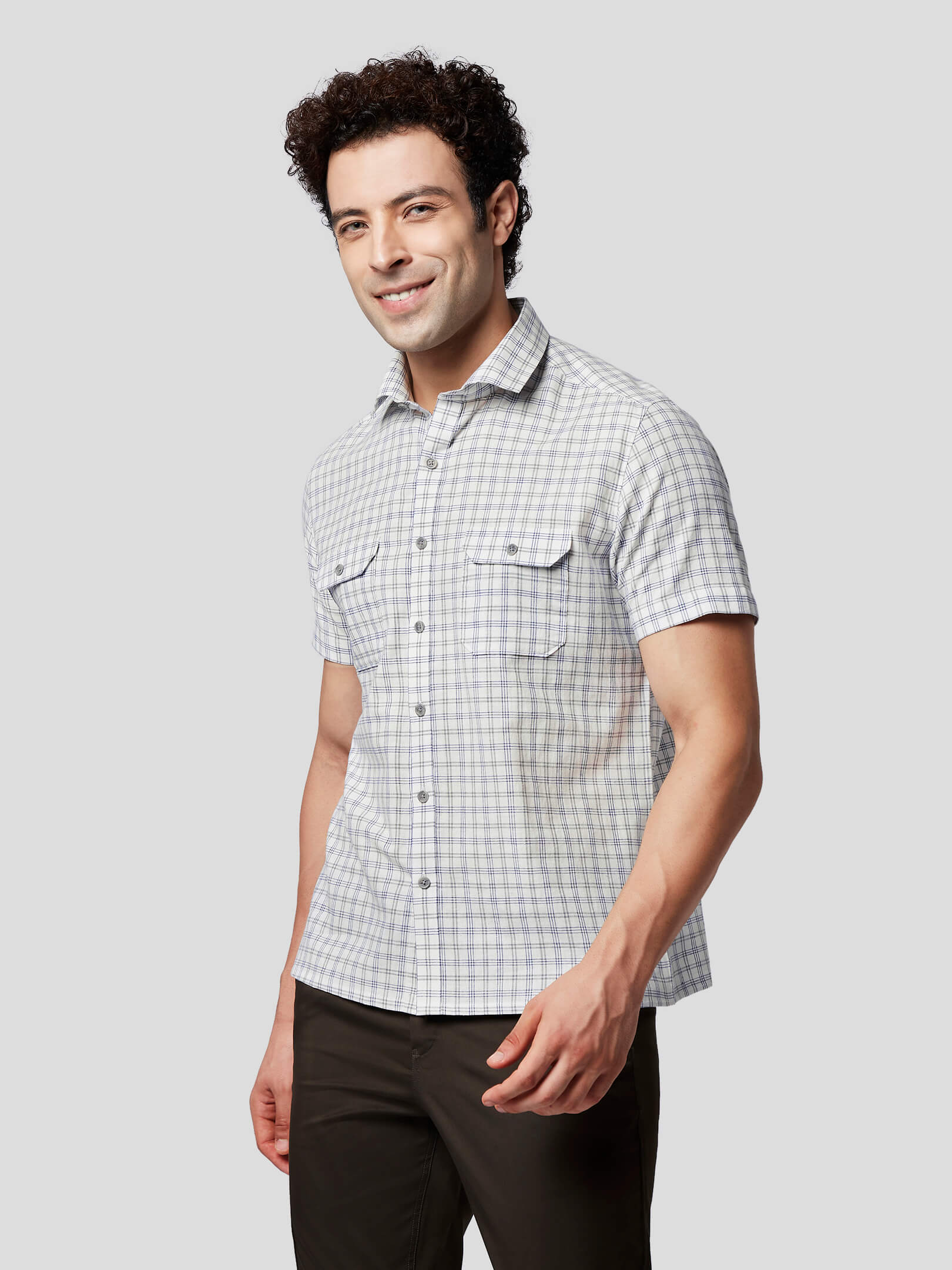 Rise : Now rise with responsibility and choose khadi for a committed attitude and comfortable look designed in Rise blue grey khadi check shirt crafted in handloom fabric. Designed with a spread collar, American placket, straight bottom and side slit, this short sleeve shirt allows comfortable movement and a breathy feel. Patch pockets with flap and buttons have been added to give a tough look to casual style where craftsmanship has added the magic of perfect pattern matching and easy feel. So, be ready to celebrate freedom in a responsibly fashionized look.