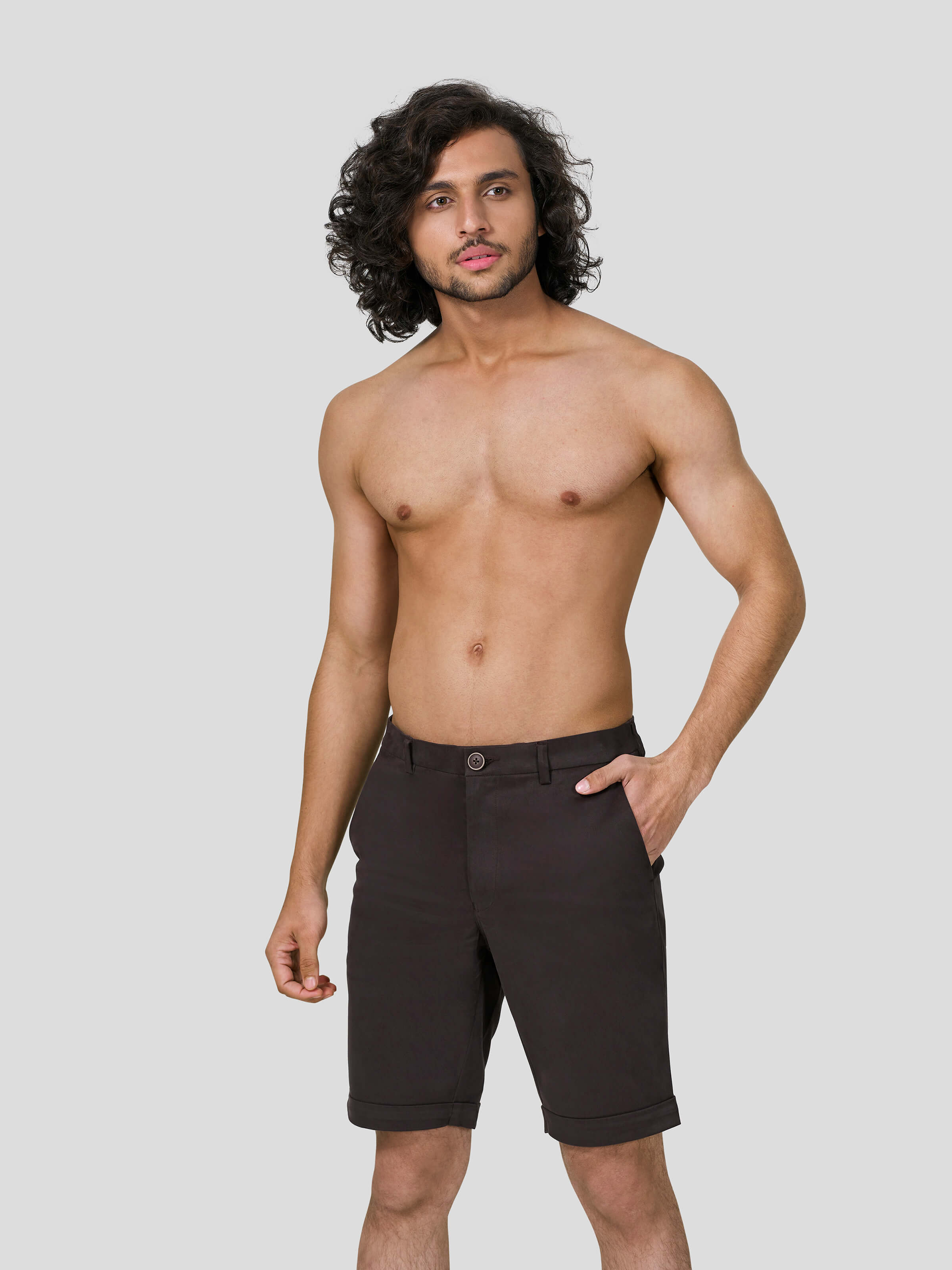 Freaky Flick: Cut to ease is our way of looking at leisurely moments after a hectic business week. Therefore, our cross-pocket shorts have been designed like a freaky flick, where of freedom has been plugged with fun. Our bar-tack detail shorts are designed with welt pocket, waistband, buttonhole and metal zip opening in the center front and turned up