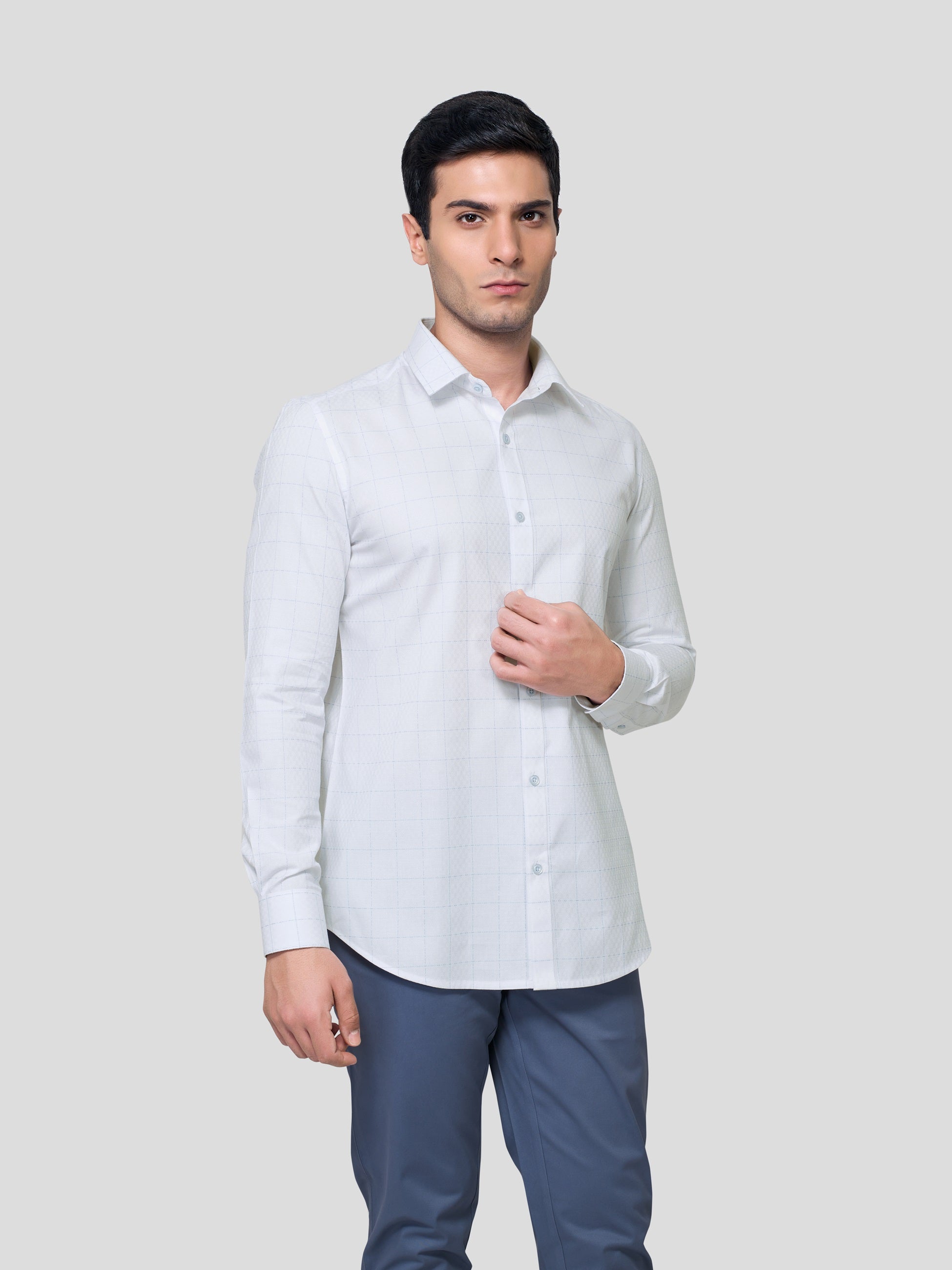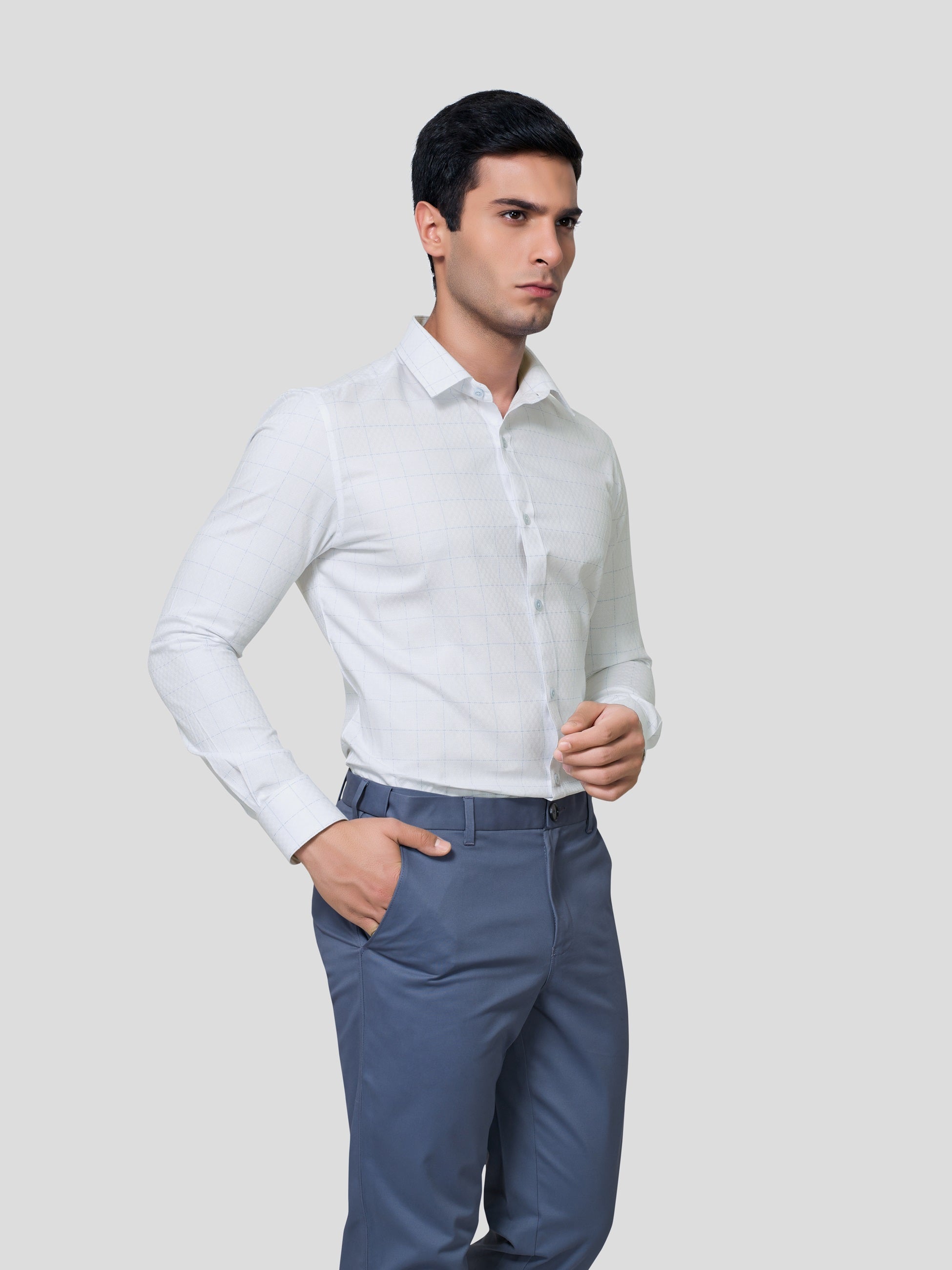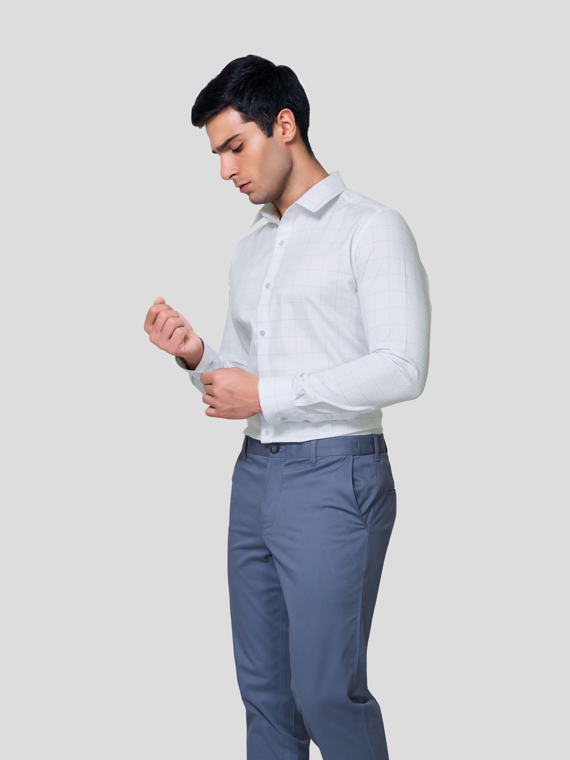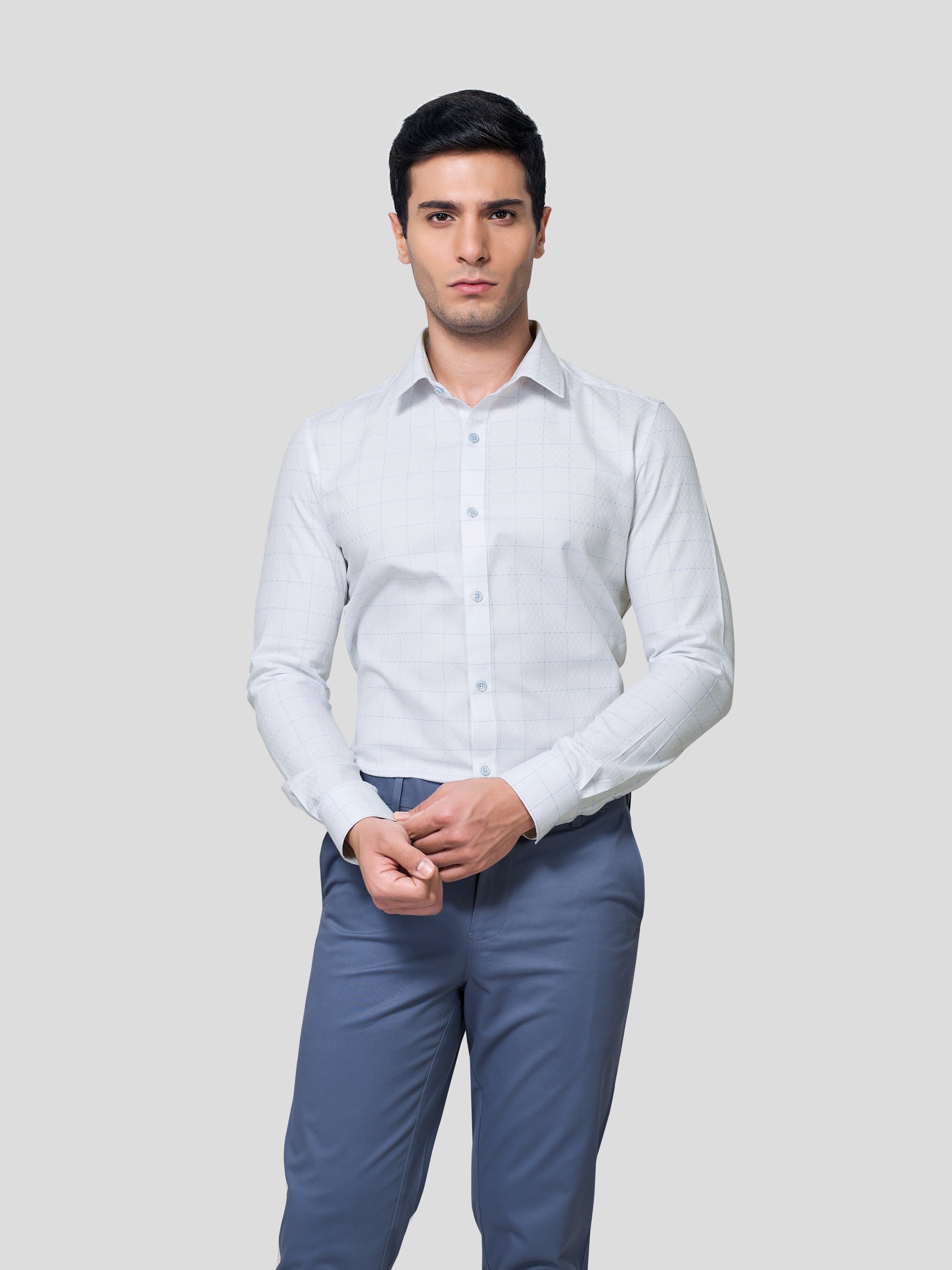 Wear it to feel the grandeur emanating from the quality of fabric, design and craftsmanship. Baronial Subtle point collar Dobby Check shirt is designed with American placket, back shoulder on bias, round cuff with adjustable buttons and contrast button detailing. The earth friendly 60s cotton fabric used in baronial business formal shirt keeps you connected with nature’s vibrancy in a responsible way.