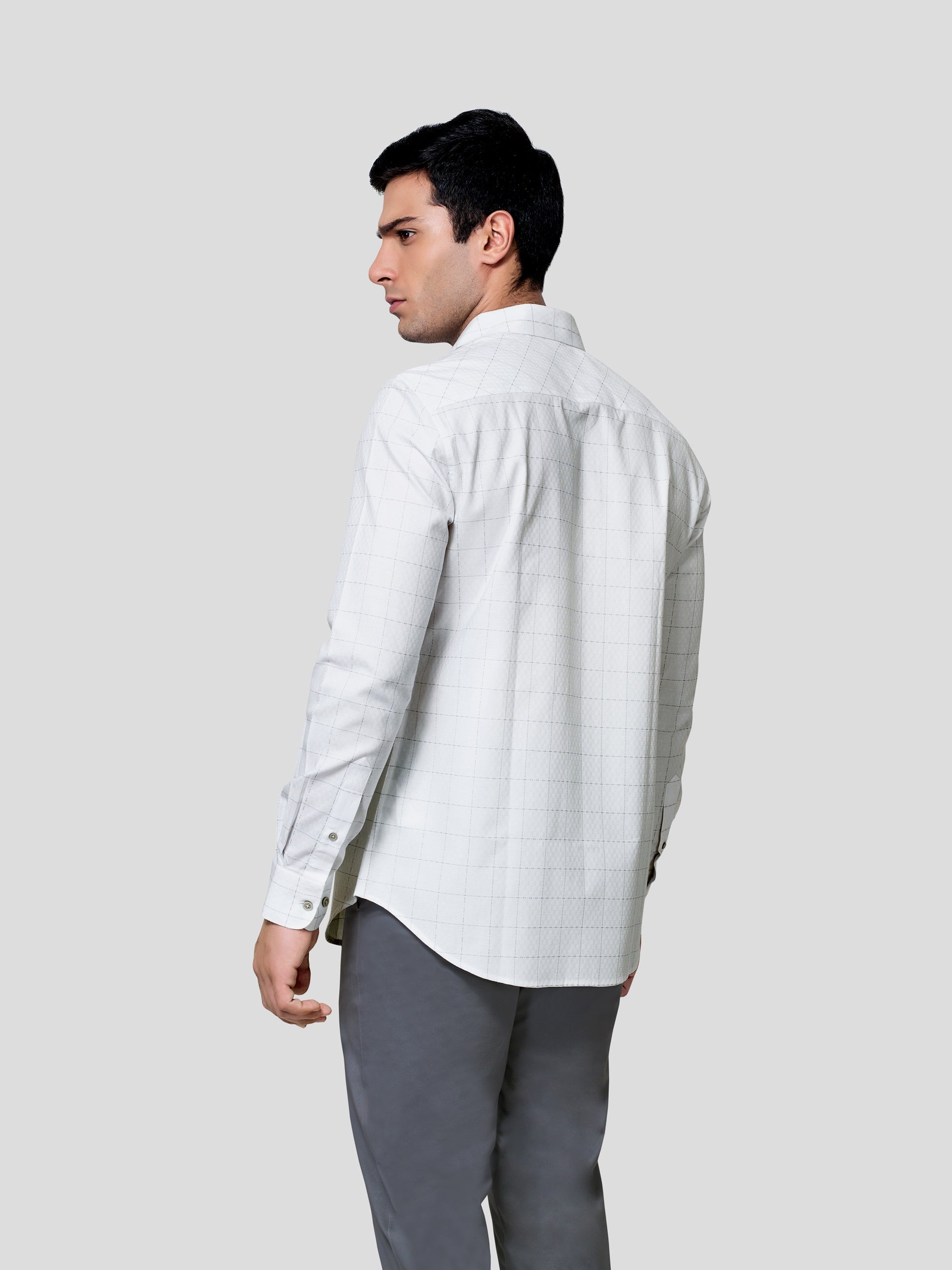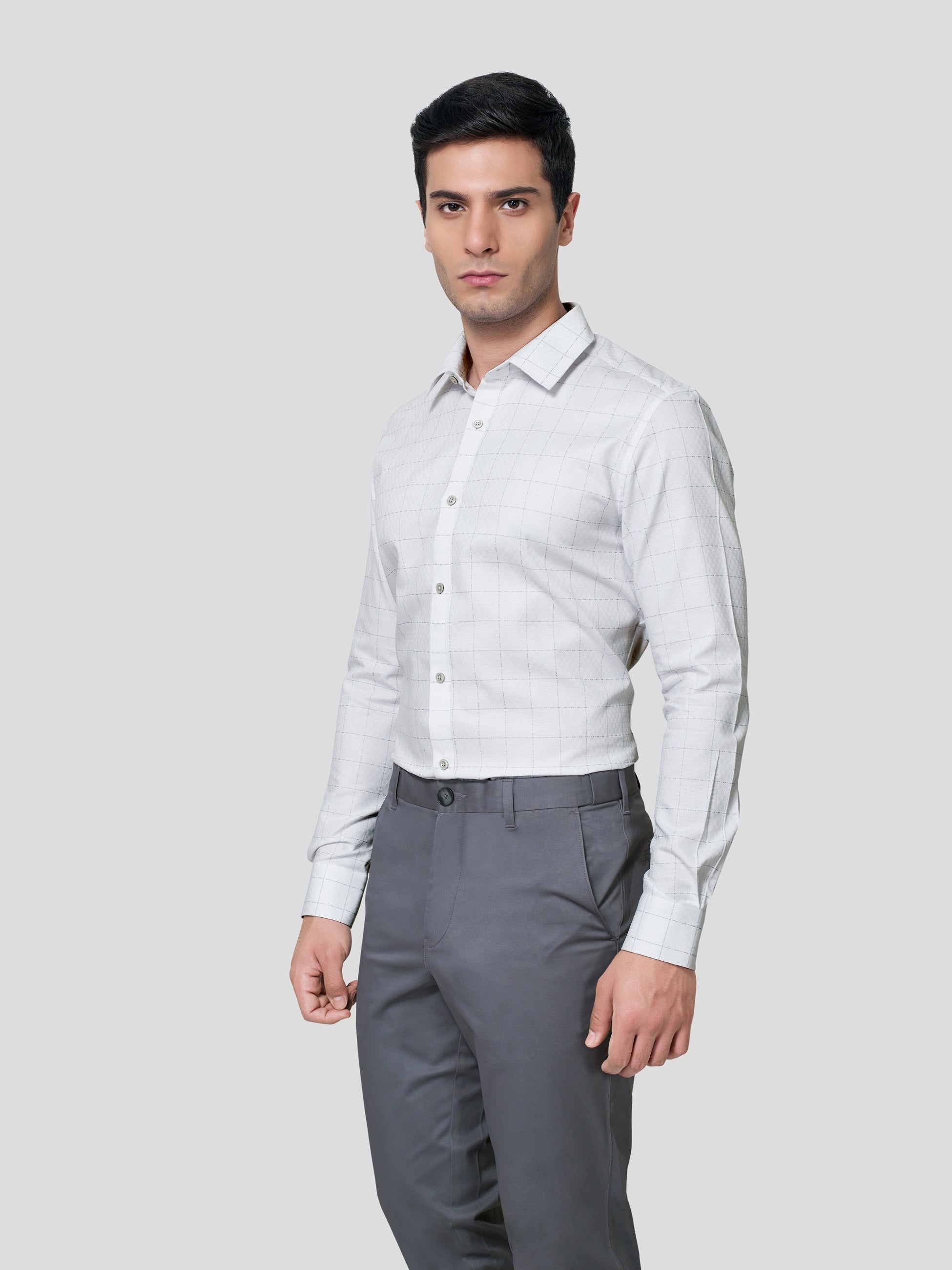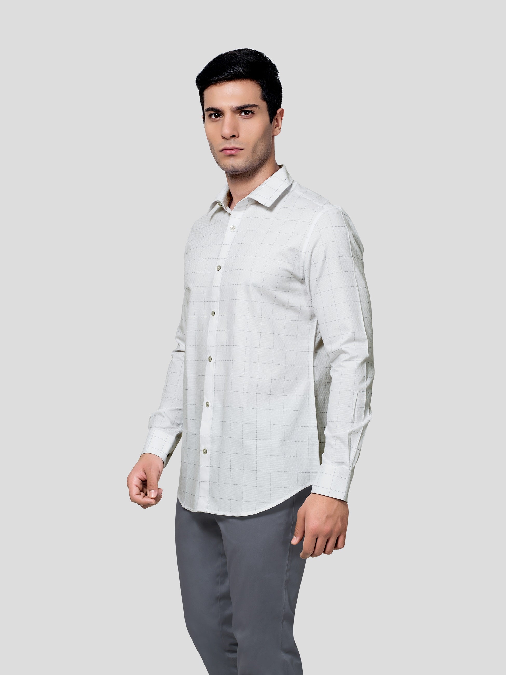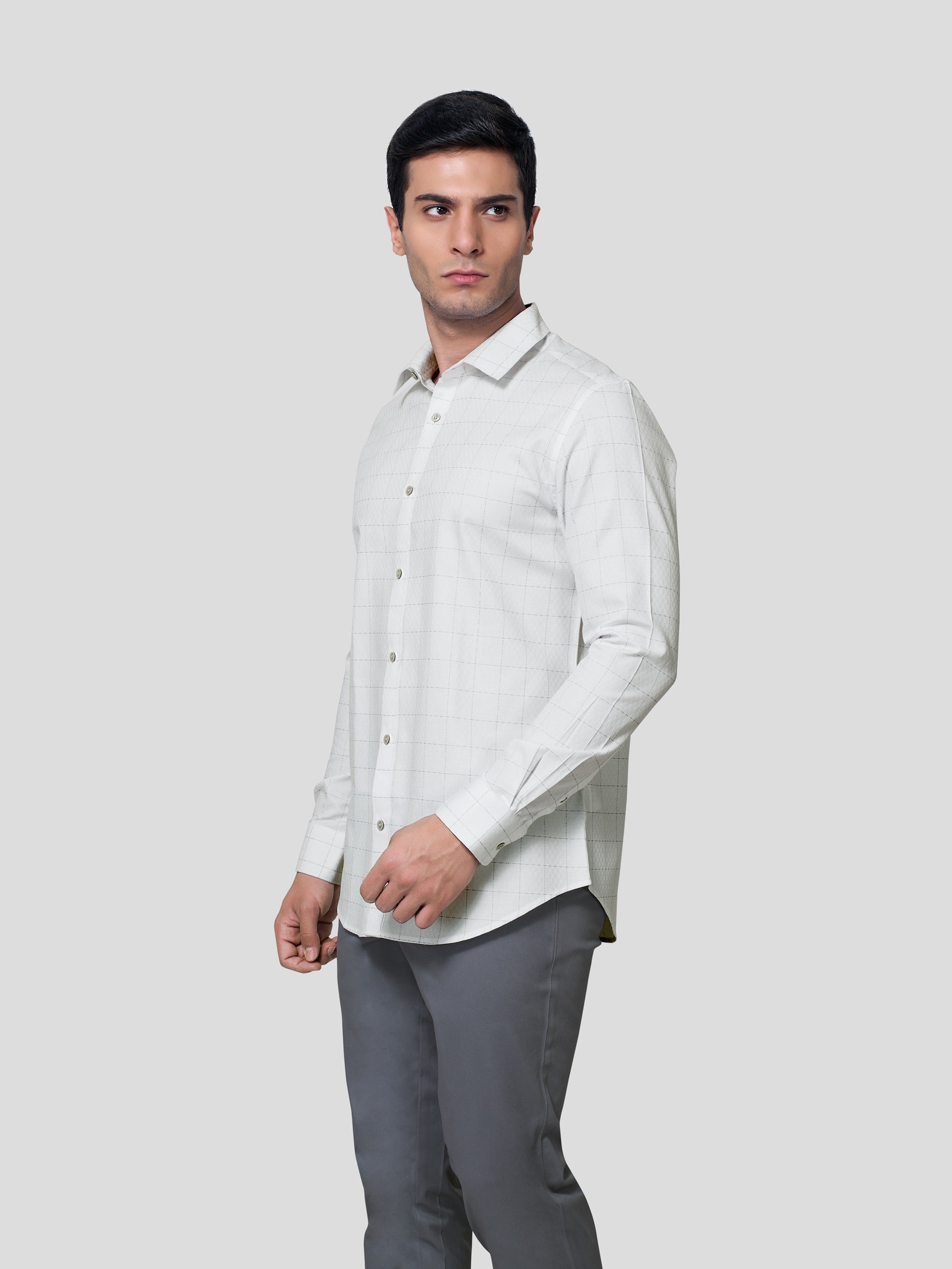 Enhance your majestic personality in Baronial Subtle Dobby Check shirt, designed responsibly for a glorious business formal look. Crafted in point collar with American placket, back shoulder on bias, round cuff with adjustable buttons and contrast button detailing. Experience nature’s purity in 60s cotton fabric and feel responsibly fashionized
