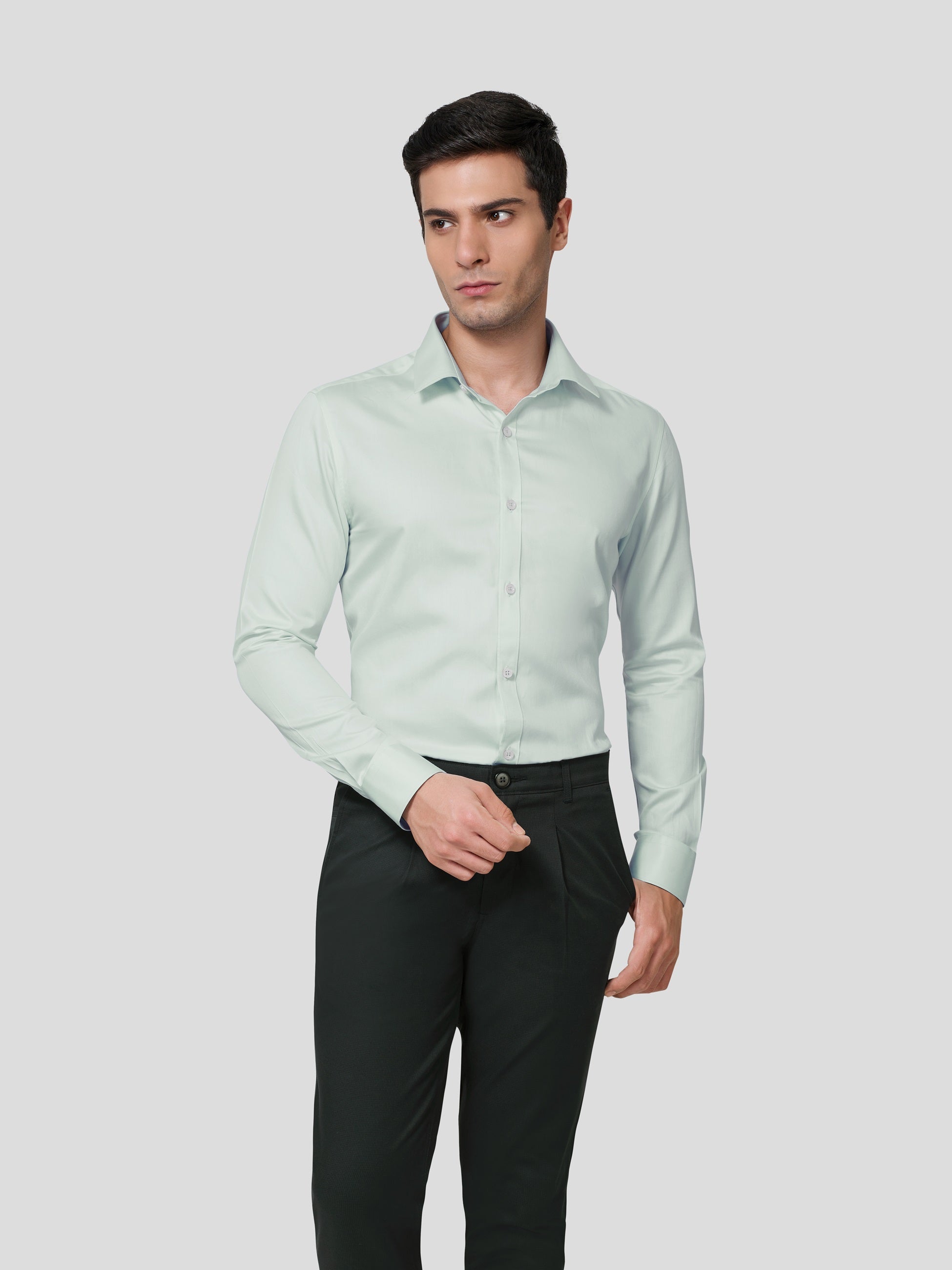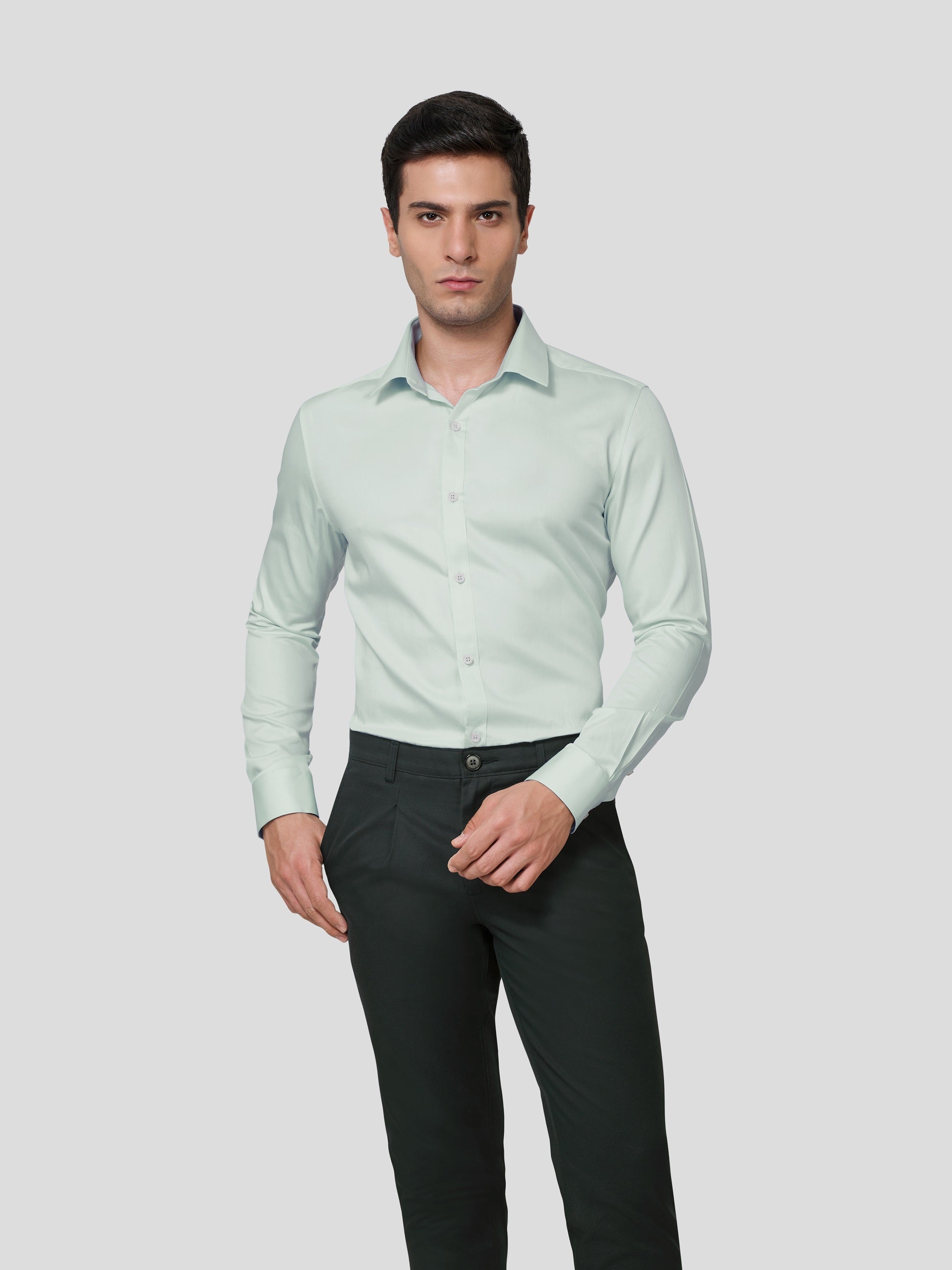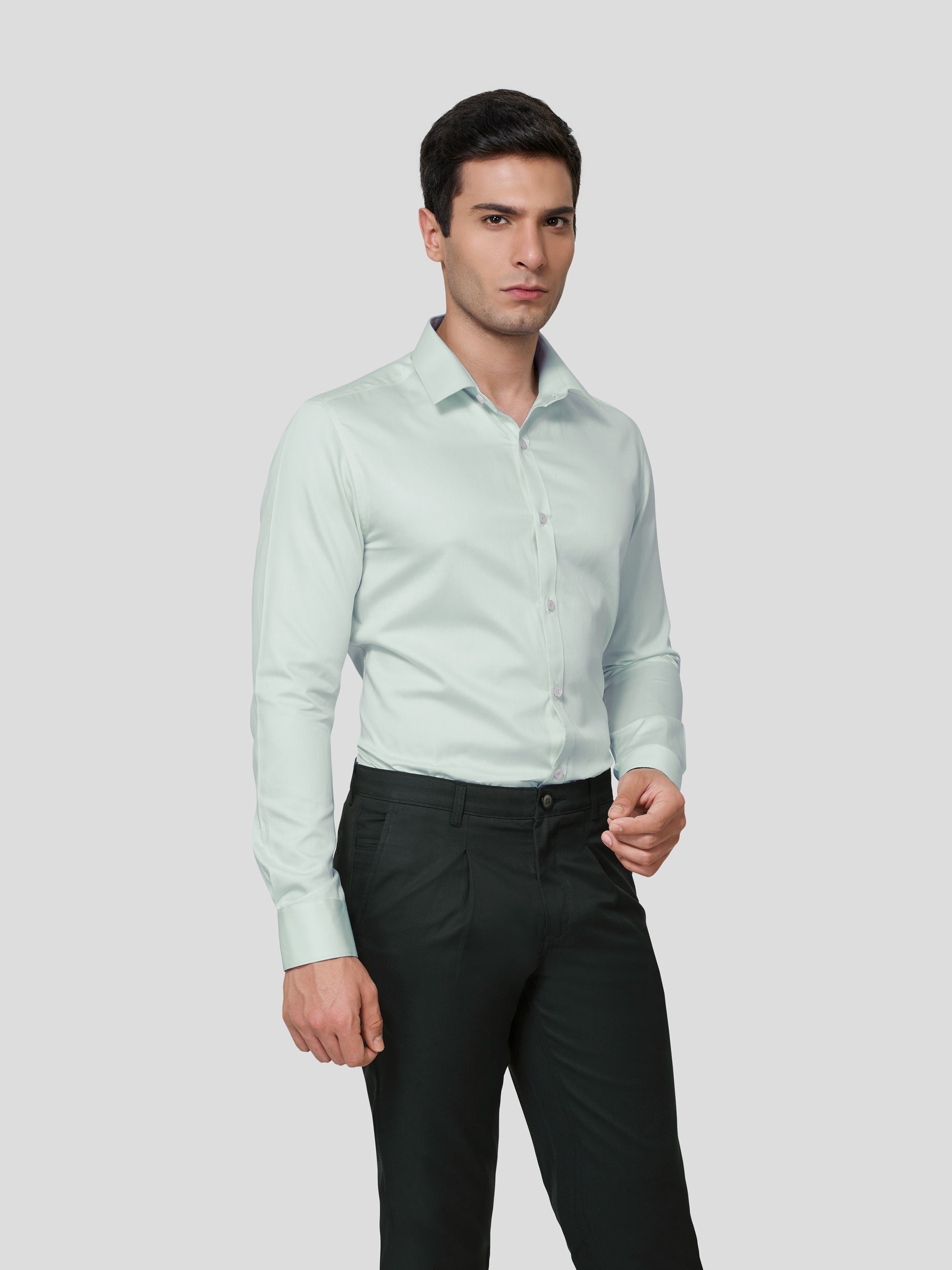 Look pleasantly formal at work in congenial classic point collar shirt designed with American placket, round cuff with adjustable buttons and imported high quality duro horn buttons. with contrast stitch detail. Crafted with precision, this business formal shirt carries nature’s vibrancy with yarn dyed 50s, earth friendly cotton to fashionize your workwear responsibly.
