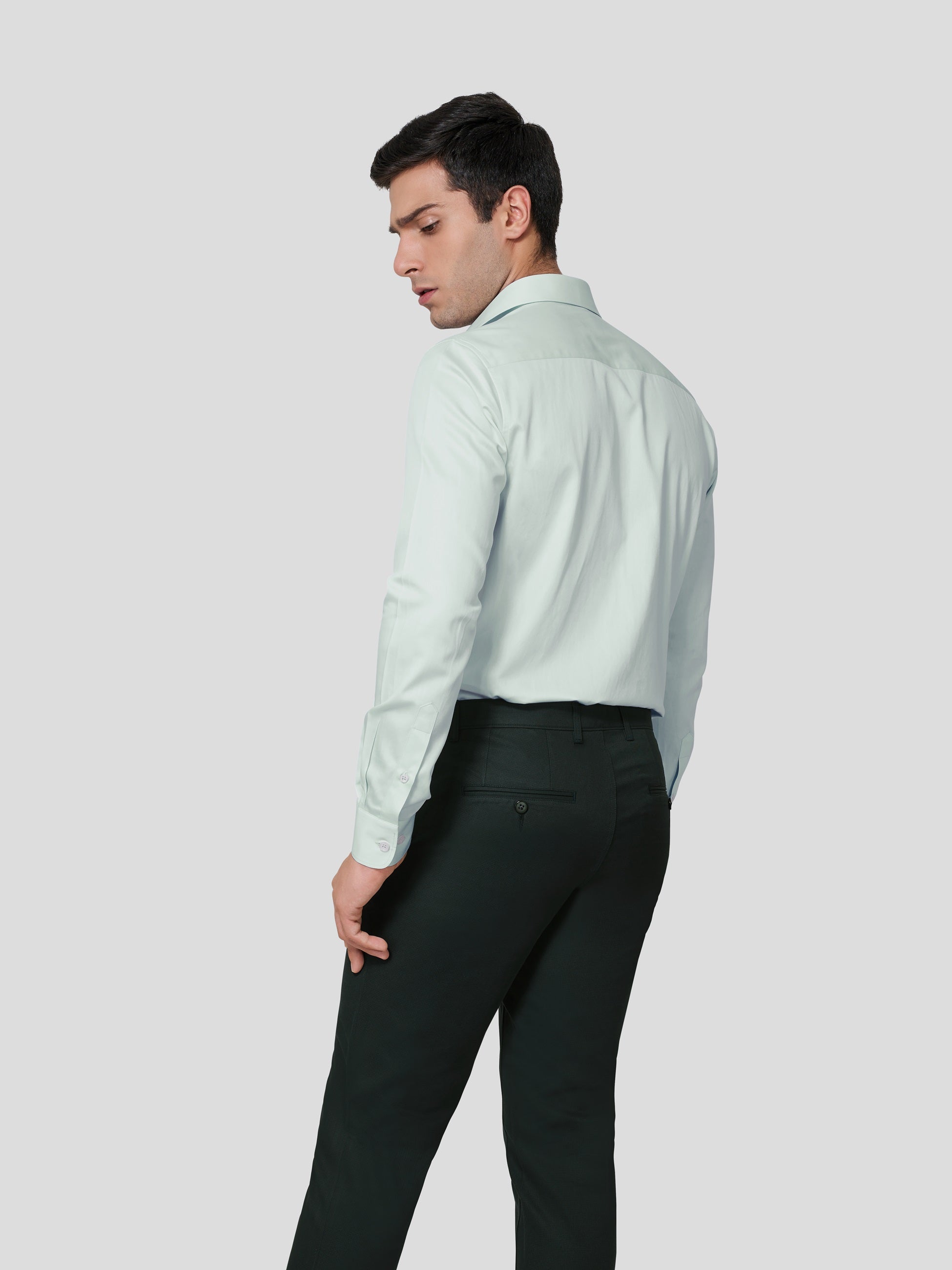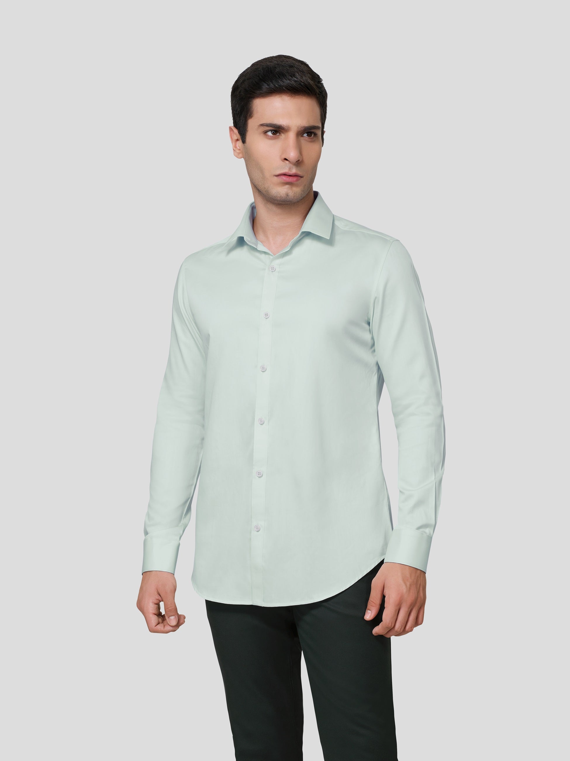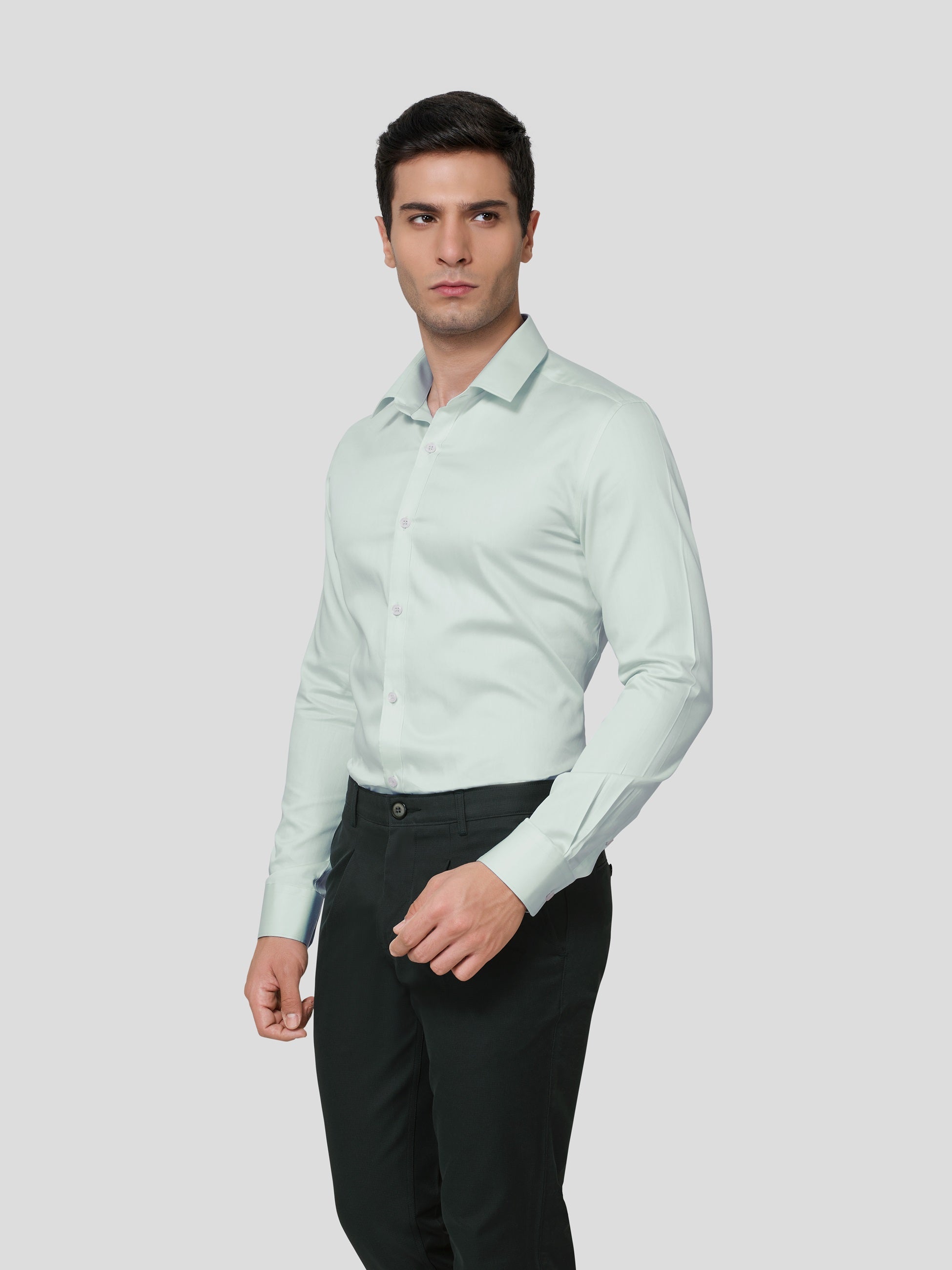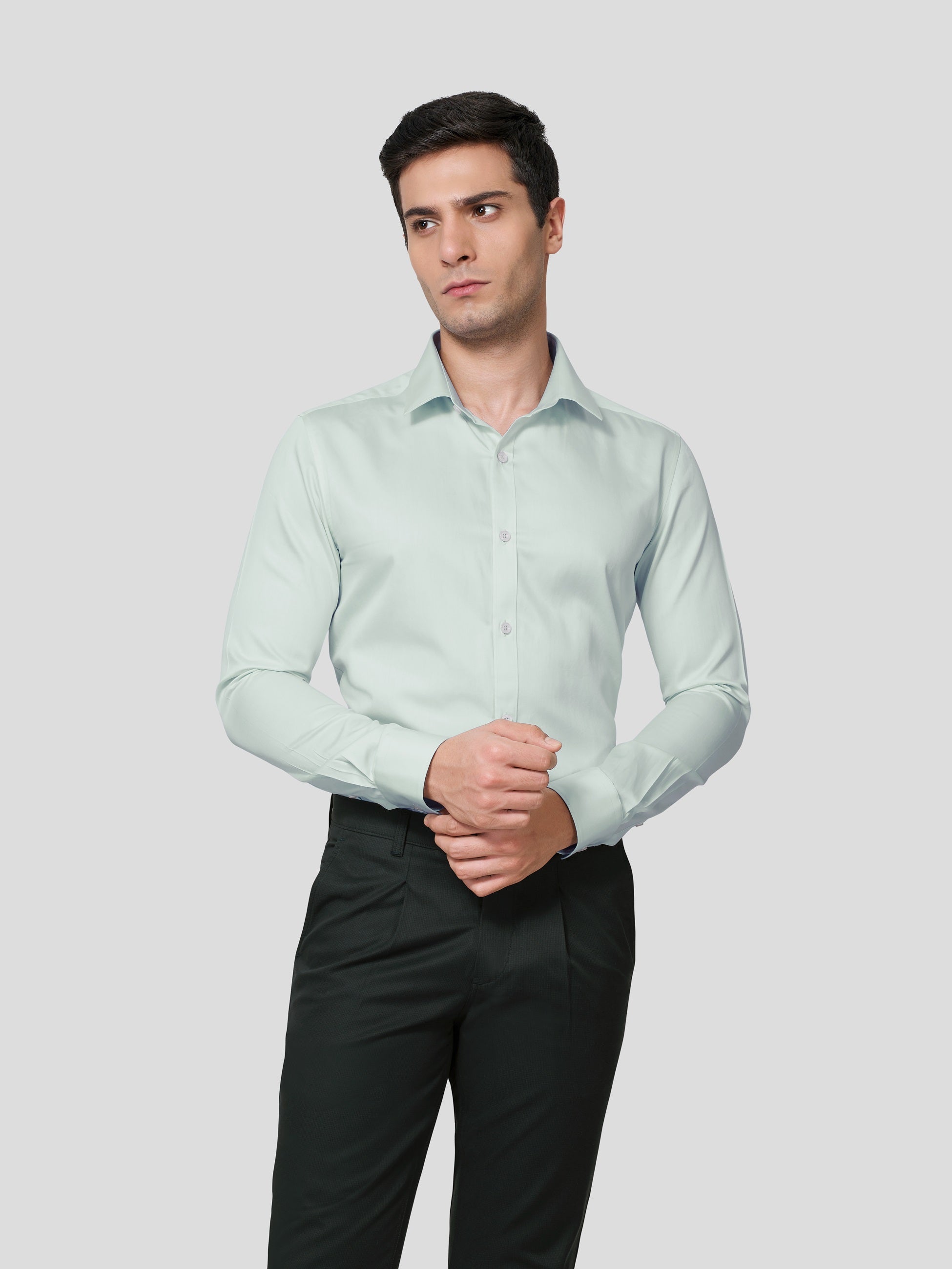 Look pleasantly formal at work in congenial classic point collar shirt designed with American placket, round cuff with adjustable buttons and imported high quality duro horn buttons. with contrast stitch detail. Crafted with precision, this business formal shirt carries nature’s vibrancy with yarn dyed 50s, earth friendly cotton to fashionize your workwear responsibly.