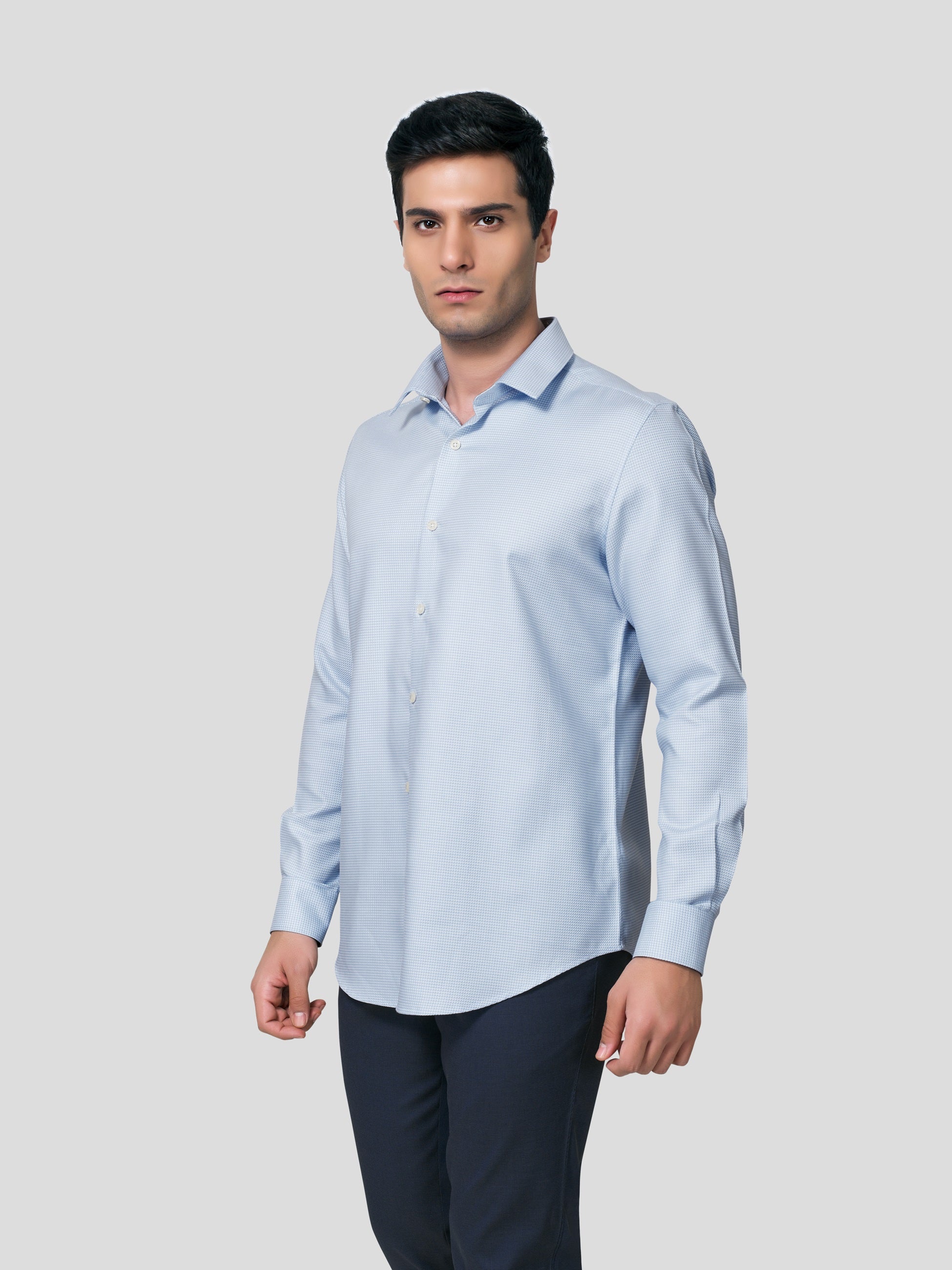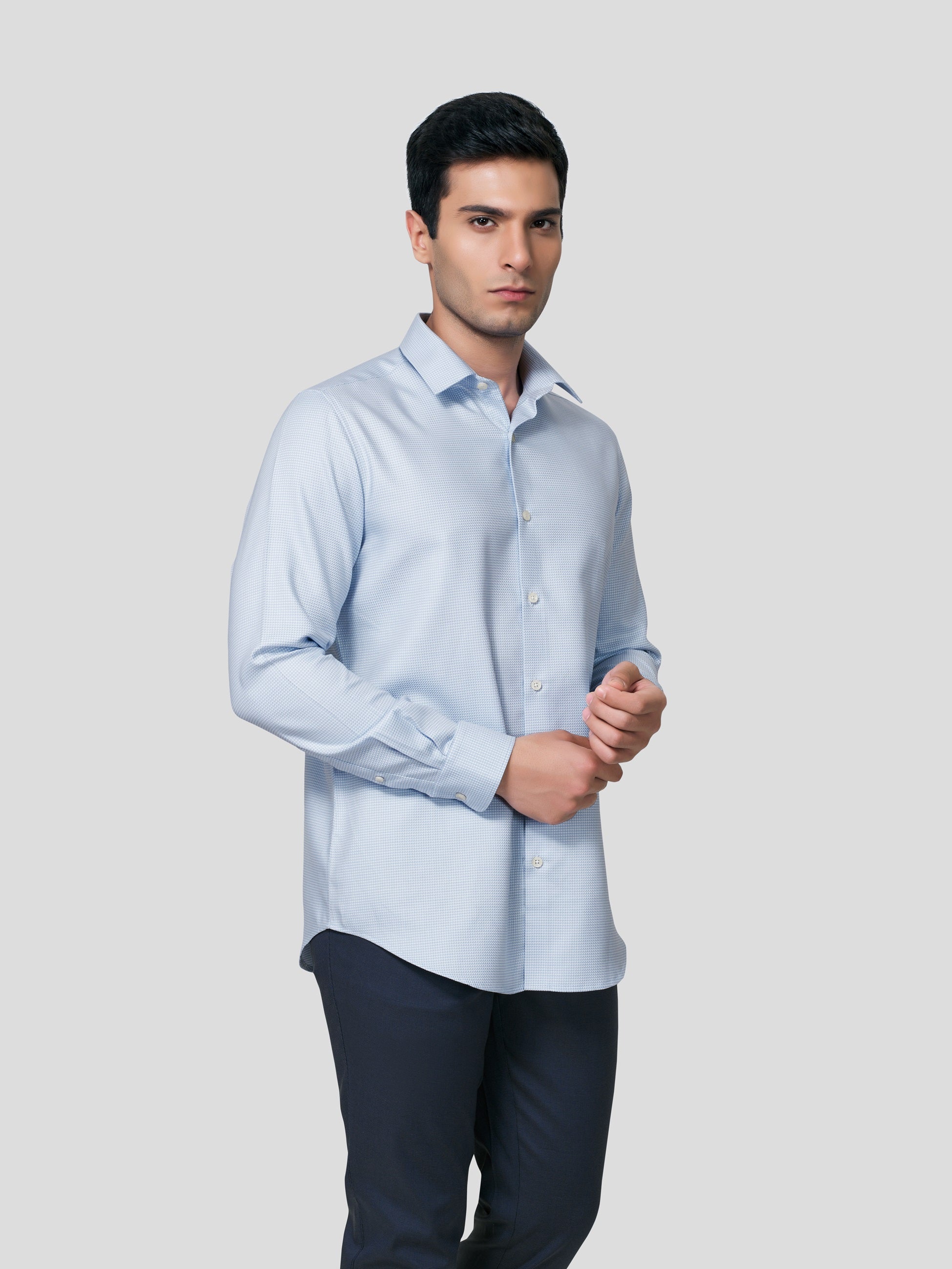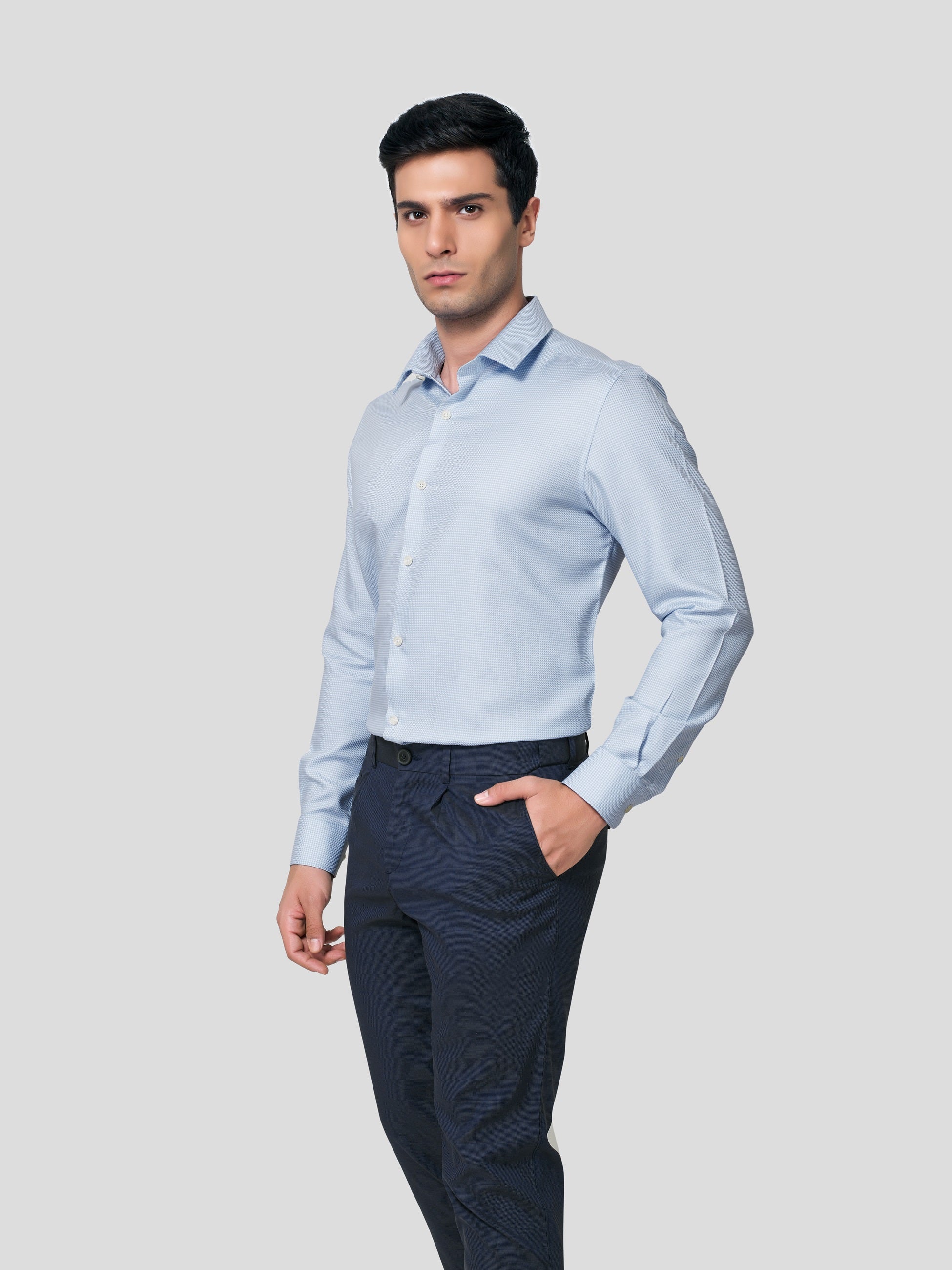 Looking good at work and getting complements is a desire which often overwhelms with pleasurable emotions. Now ensure such feelings of elation in Point Collar business formal shirt designed with yarn dyed 50s natural cotton, French placket, single round cuffs and imported duro horn buttons. Crafted carefully for extraordinary comfort, so you can be certain to fetch admiration in a responsibly fashionized way.