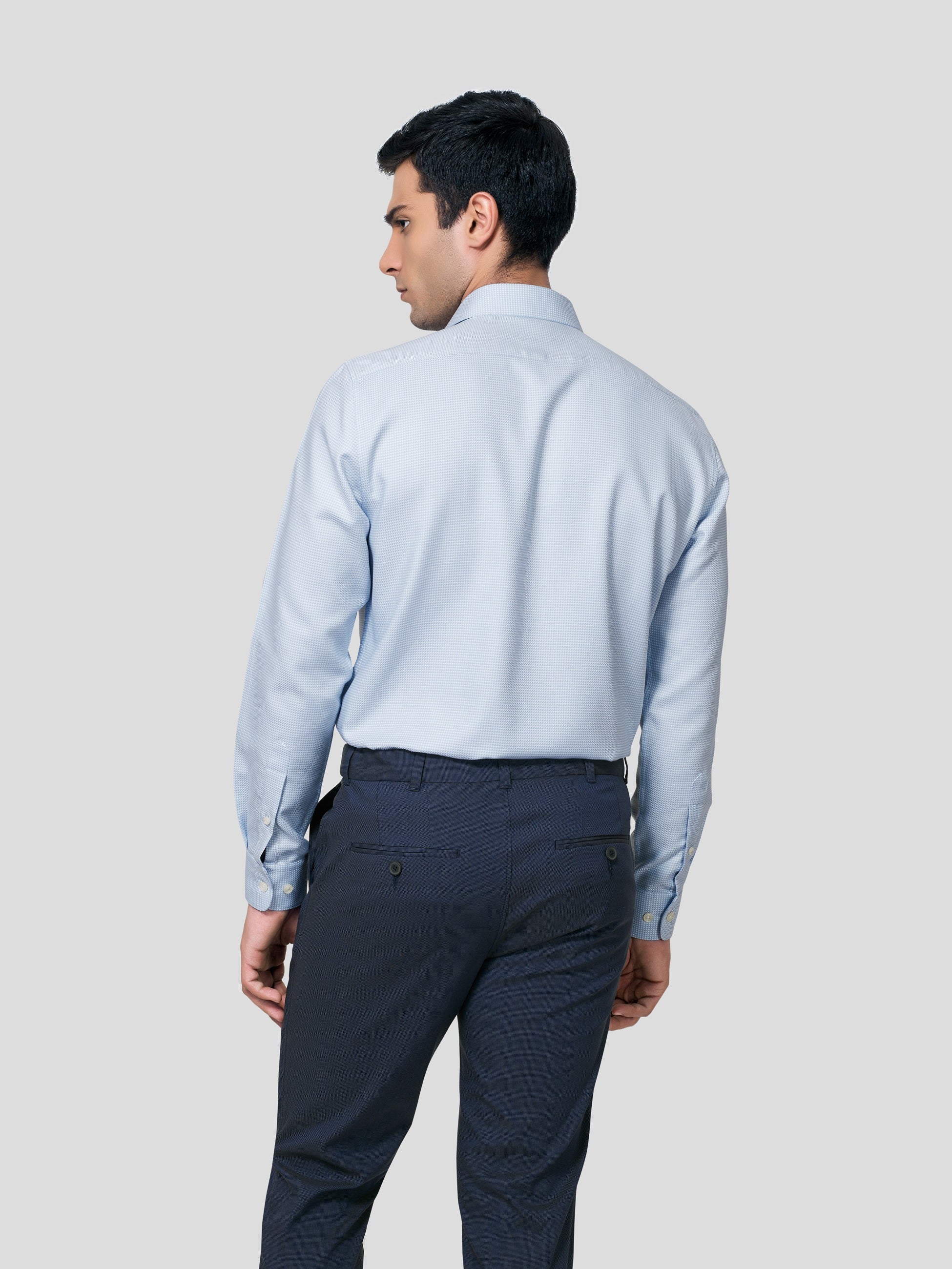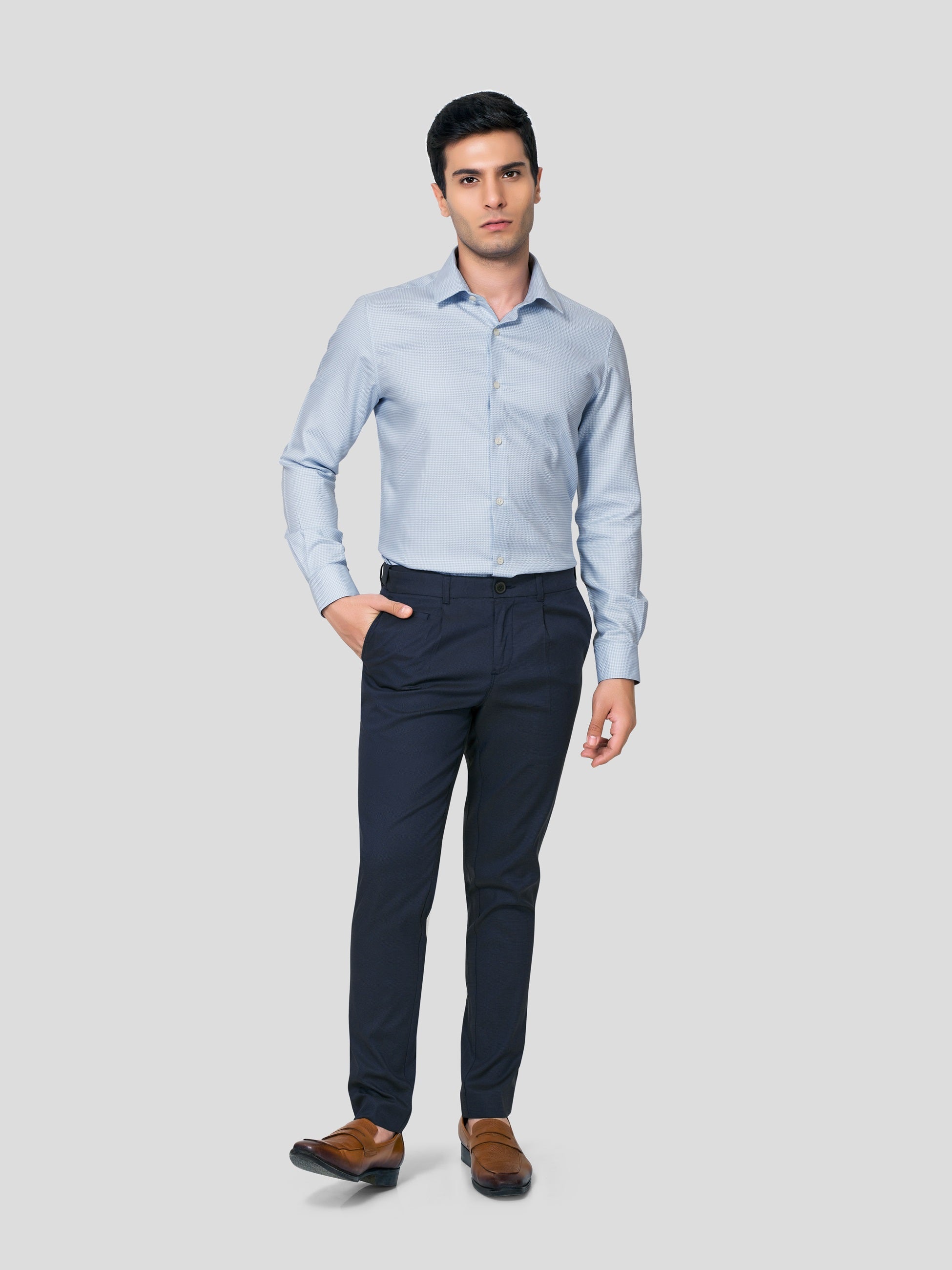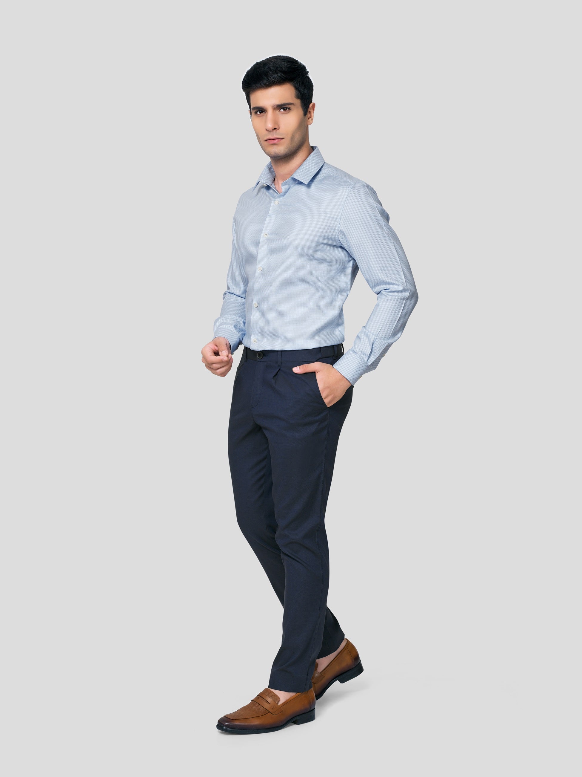 Looking good at work and getting complements is a desire which often overwhelms with pleasurable emotions. Now ensure such feelings of elation in Point Collar business formal shirt designed with yarn dyed 50s natural cotton, French placket, single round cuffs and imported duro horn buttons. Crafted carefully for extraordinary comfort, so you can be certain to fetch admiration in a responsibly fashionized way.