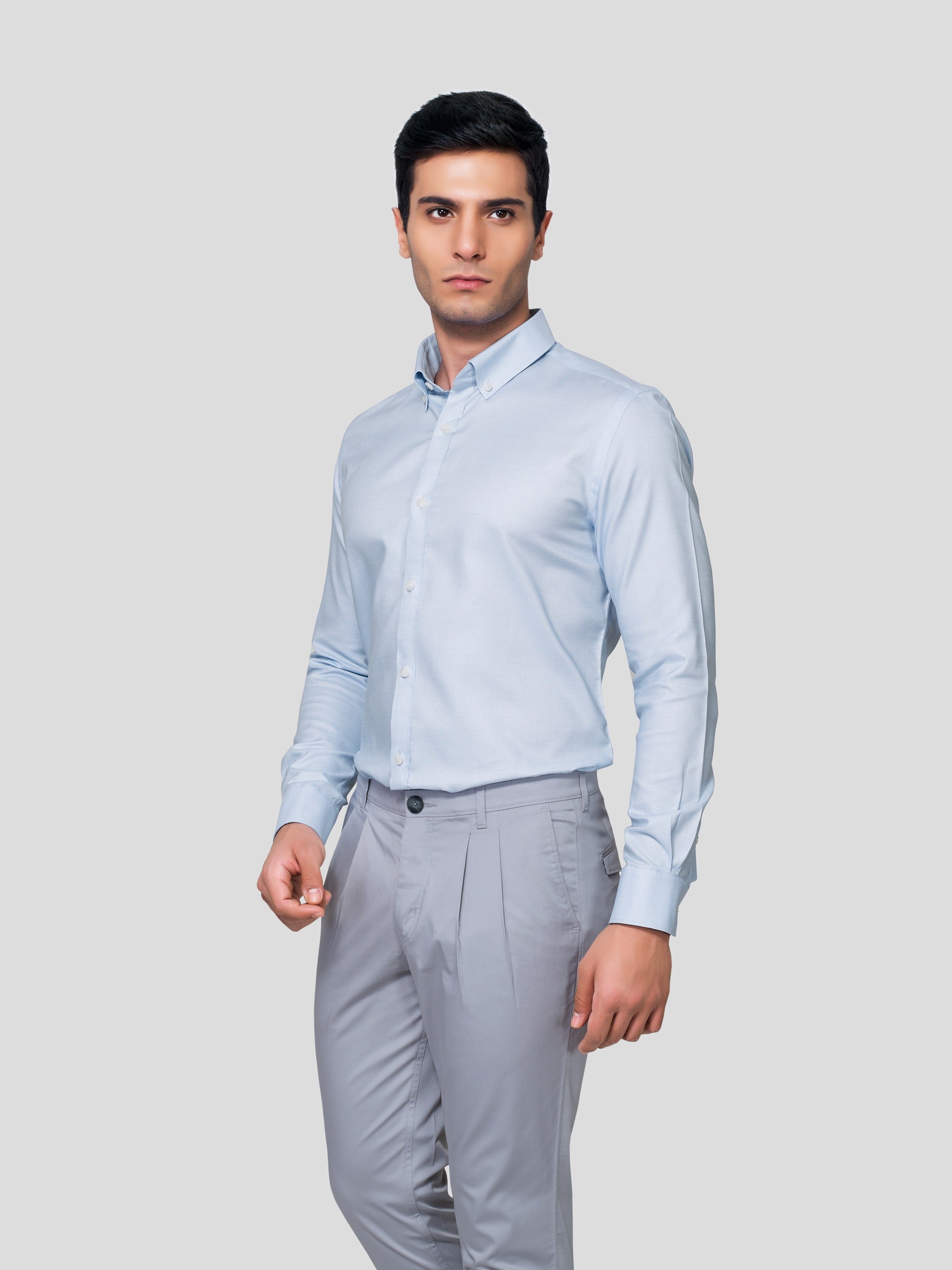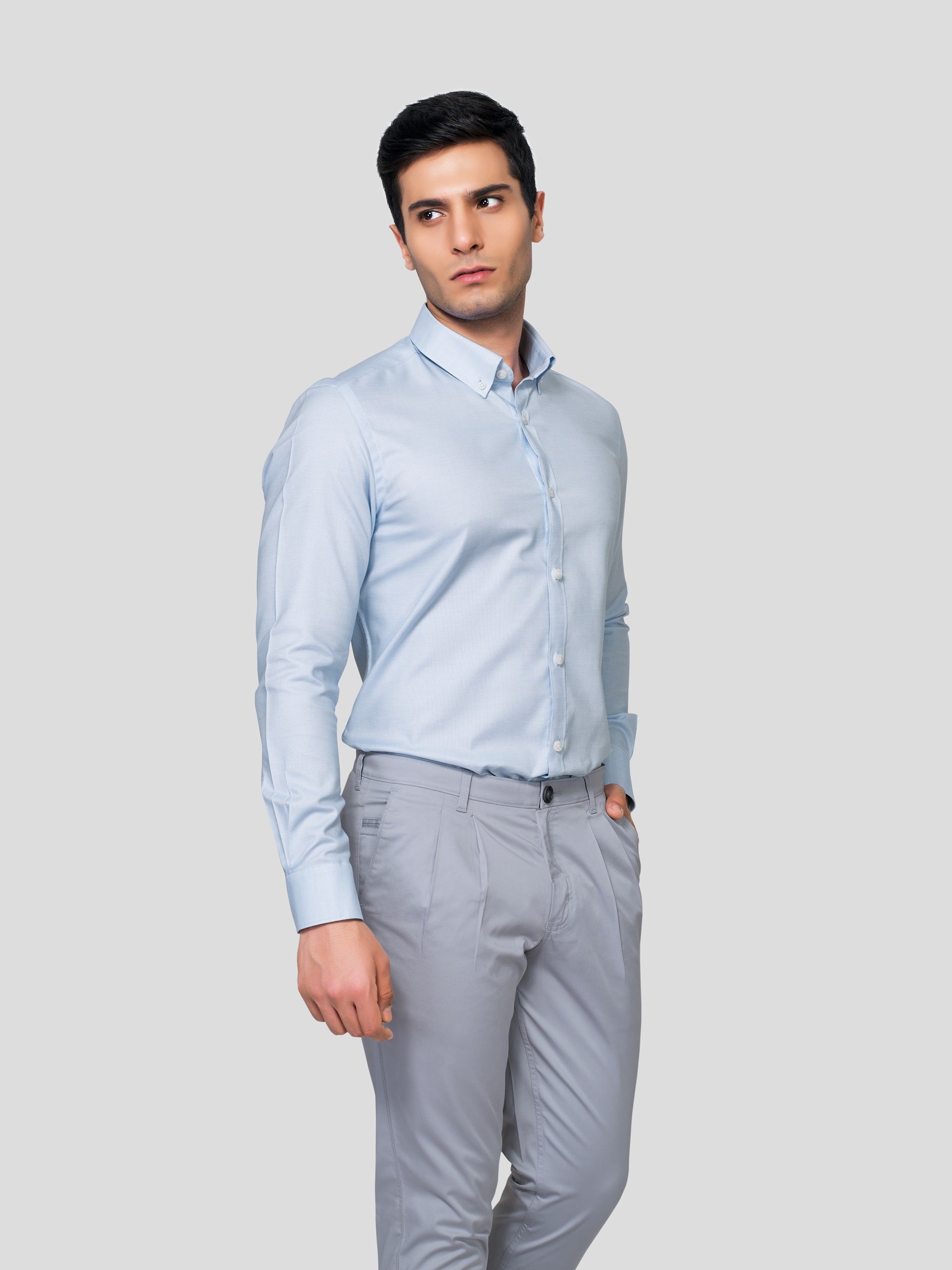 Its time to look pleased and contented in felicitous button-down, full sleeves business formal shirt, crafted with American placket and round single button cuff to elevate your feelings. Designed with earth friendly, 50s Dobby Cotton fabric to keep nature’s purity in this workwear shirt intact to let you look responsibly fashionized.