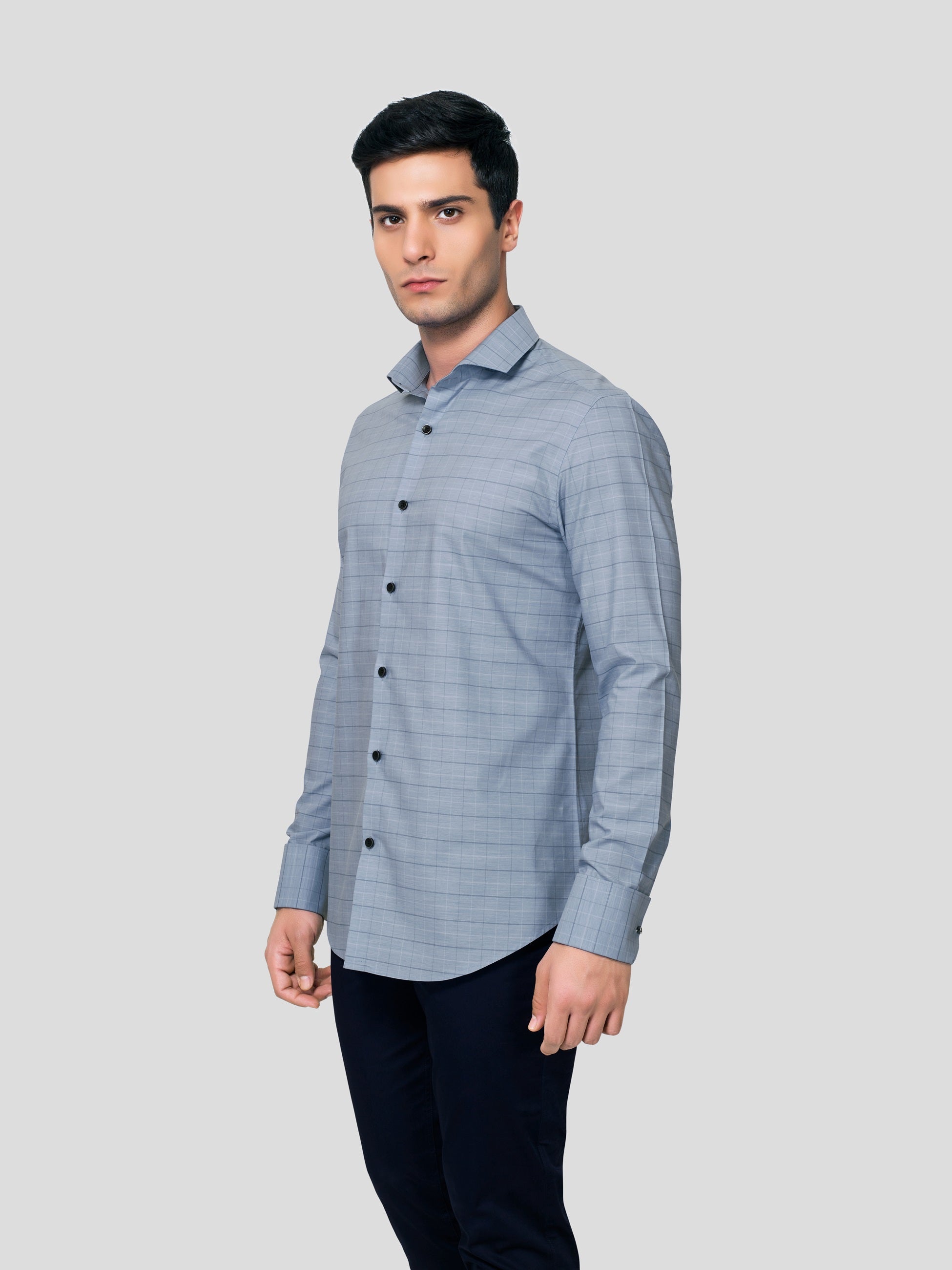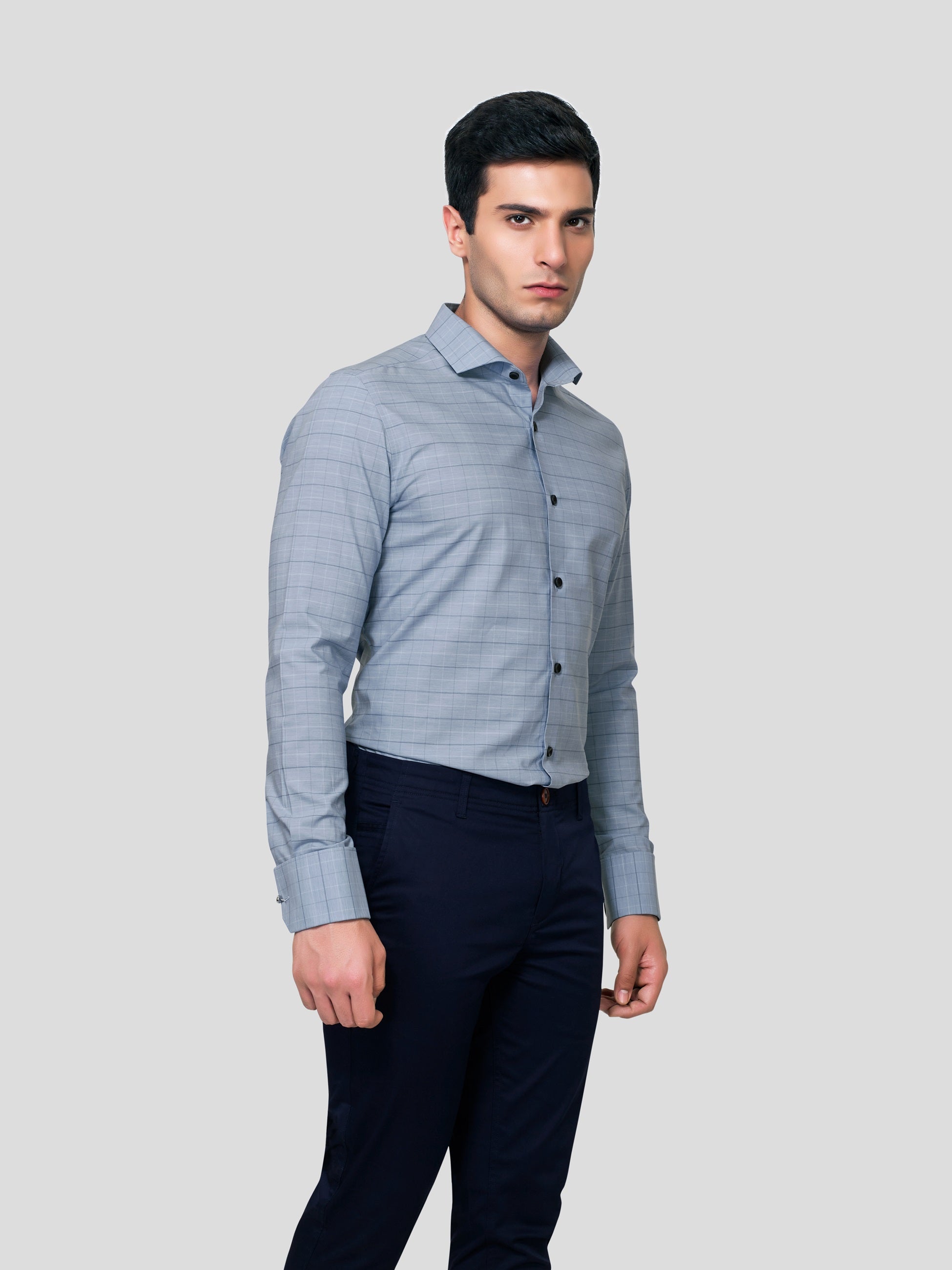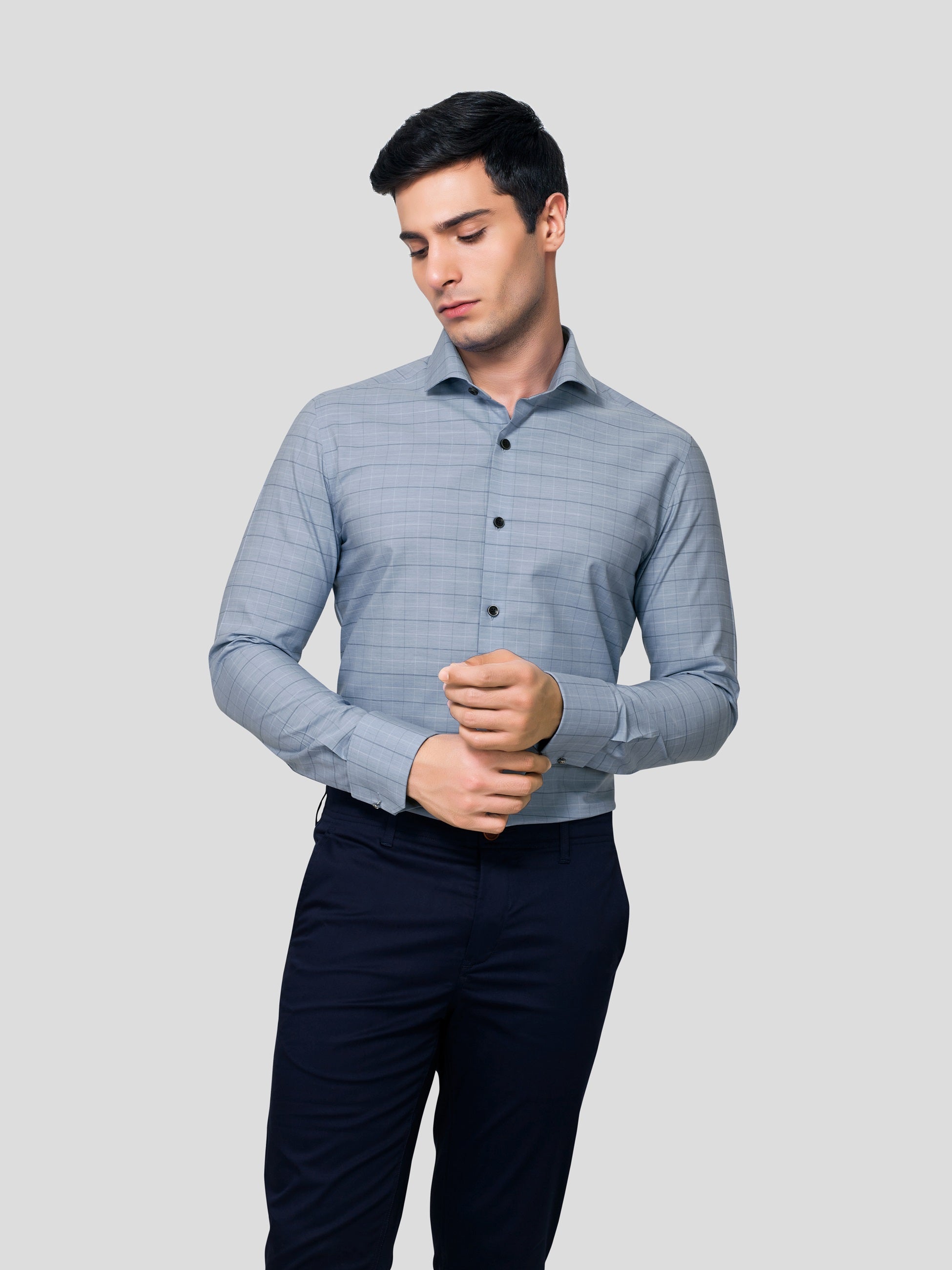 Celebrate a combination of premium feelings and high-class attitude in Haute Edgy French Cuff shirt. Designed with cut way collar, French placket, angled French cuff, contrast color imitation of mother of pearl buttons, metal cuff link and double needle top stitch, this business formal shirt gives you a crisp business look. Carefully crafted in earth friendly, yarn dyed 70s cotton to fashionize your work wear look responsibly.