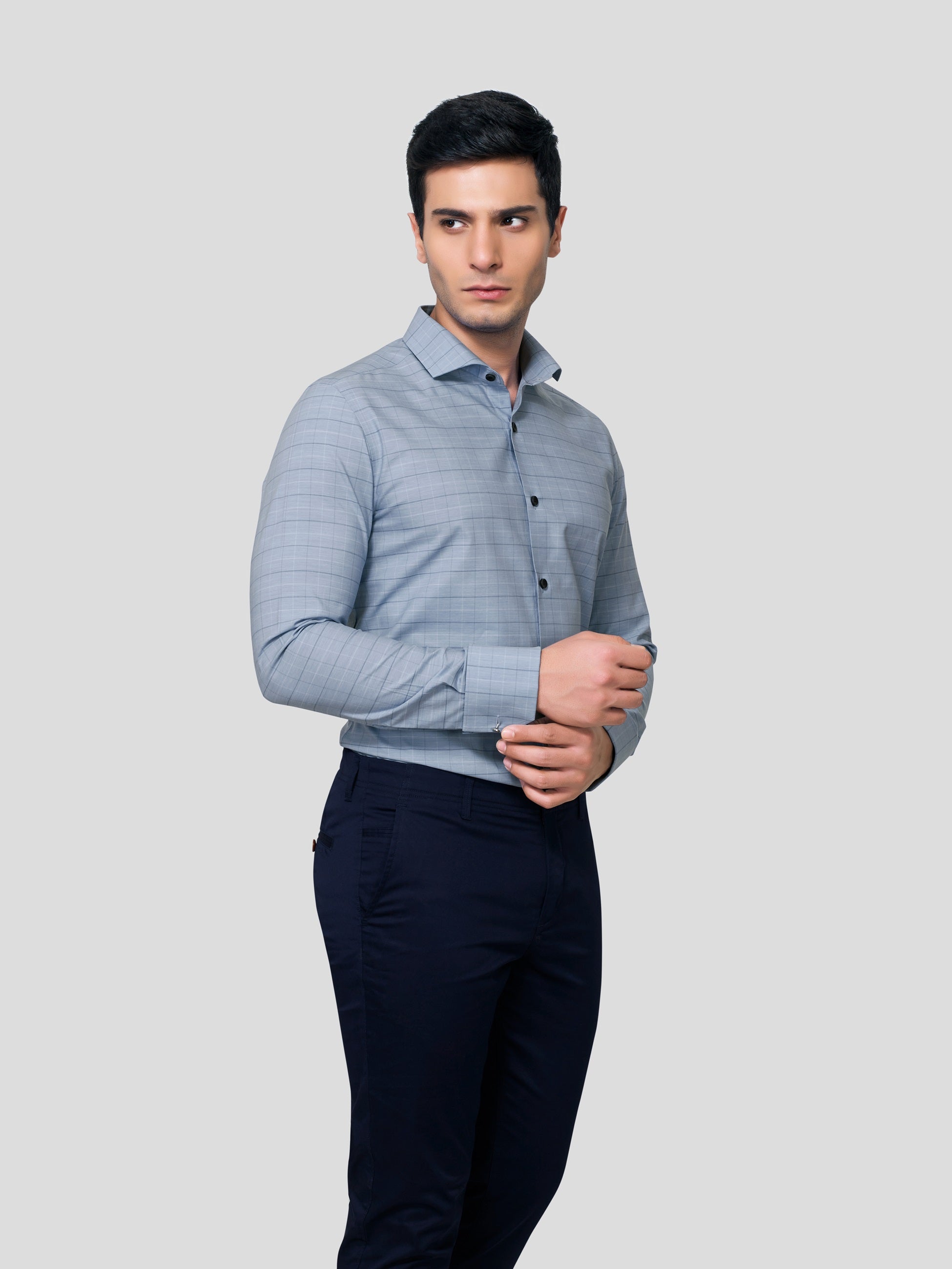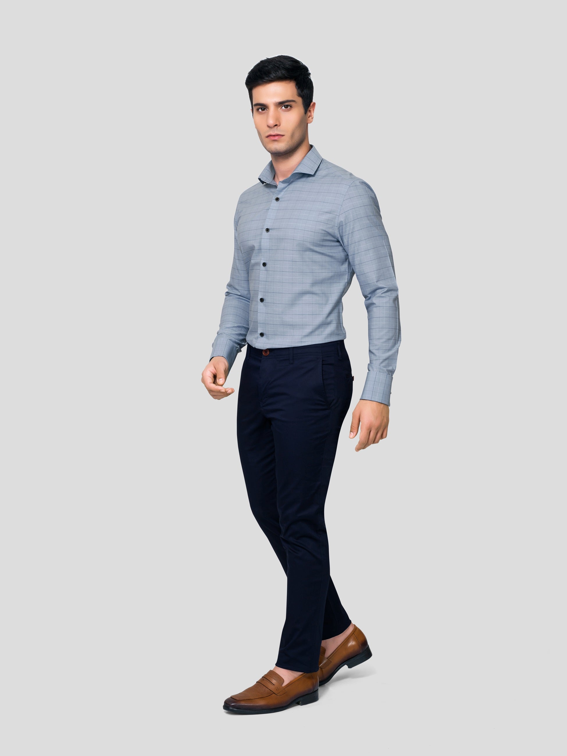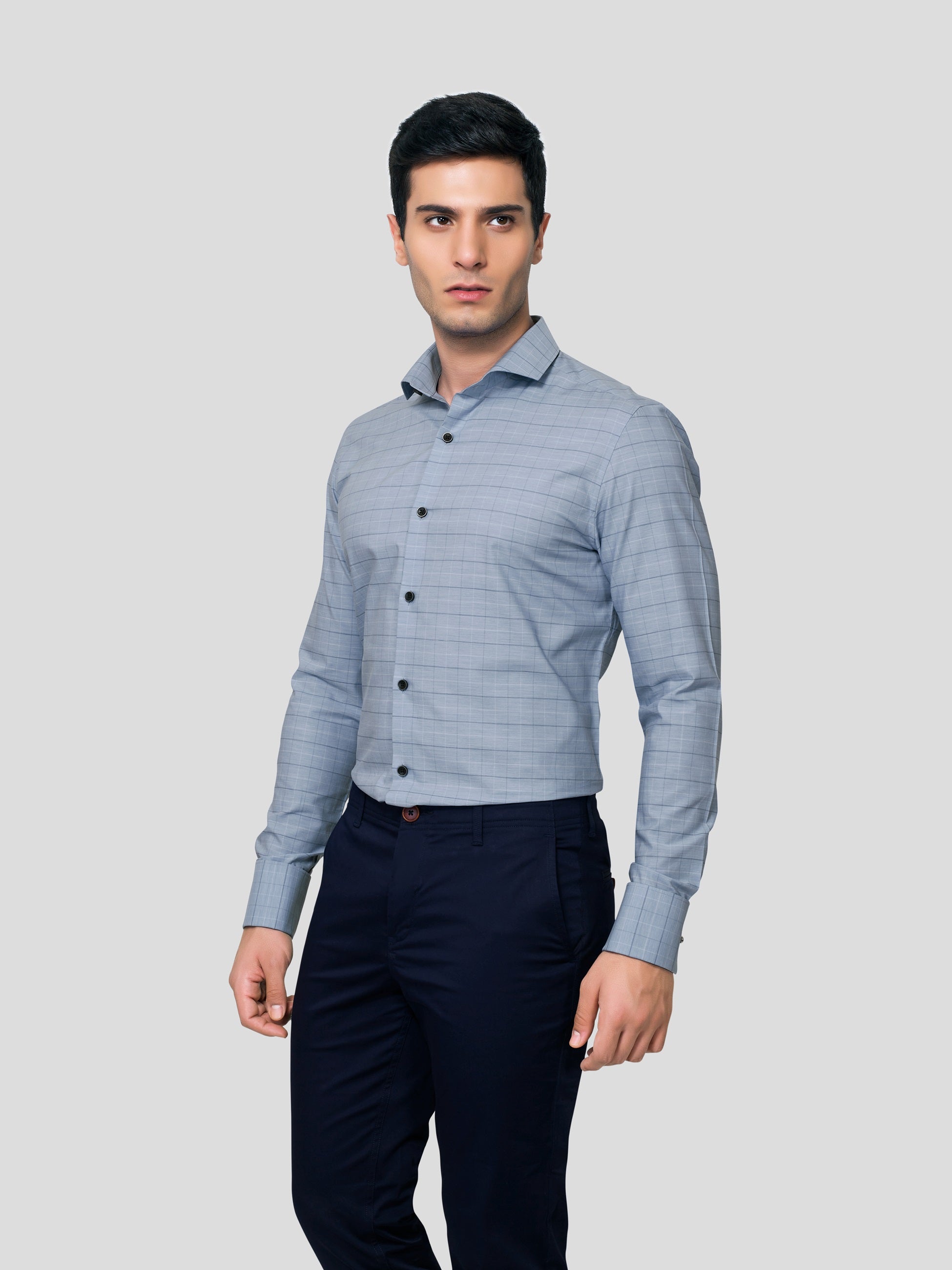 Celebrate a combination of premium feelings and high-class attitude in Haute Edgy French Cuff shirt. Designed with cut way collar, French placket, angled French cuff, contrast color imitation of mother of pearl buttons, metal cuff link and double needle top stitch, this business formal shirt gives you a crisp business look. Carefully crafted in earth friendly, yarn dyed 70s cotton to fashionize your work wear look responsibly.