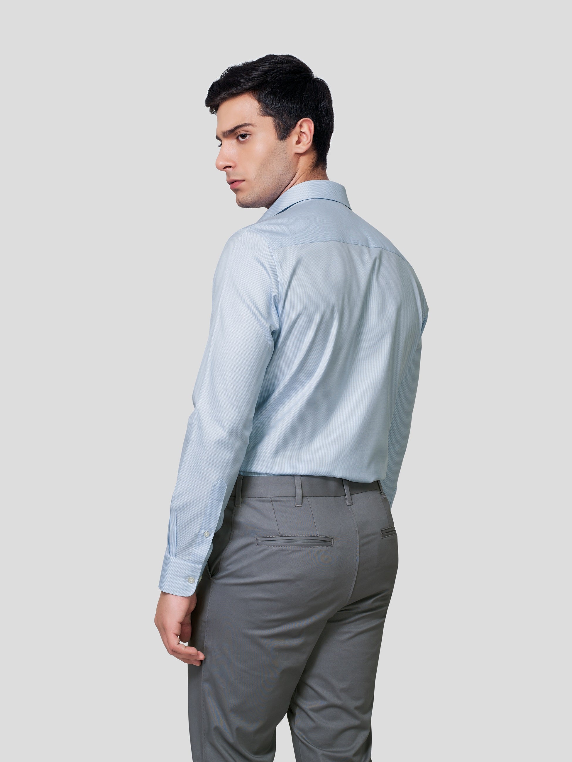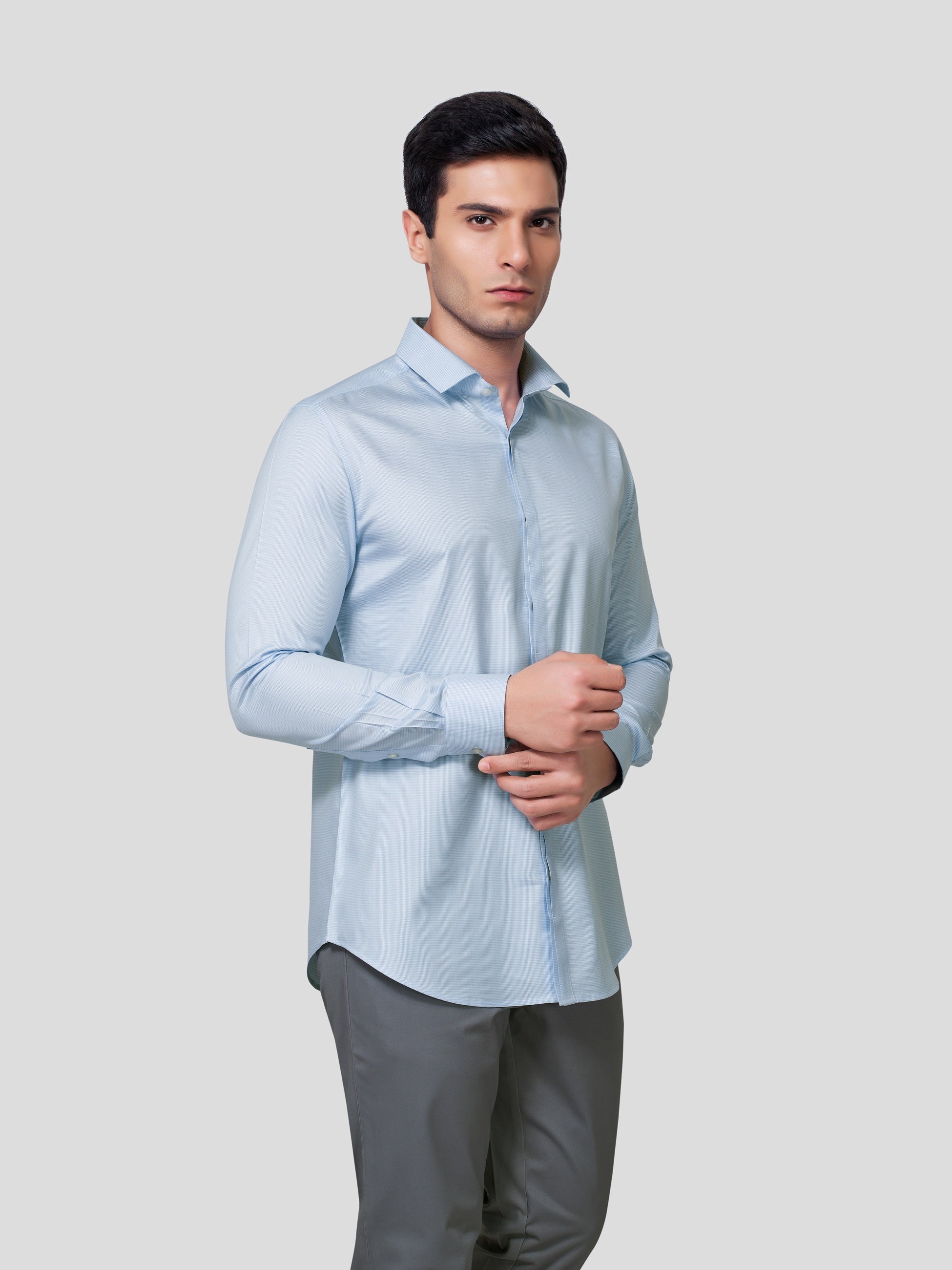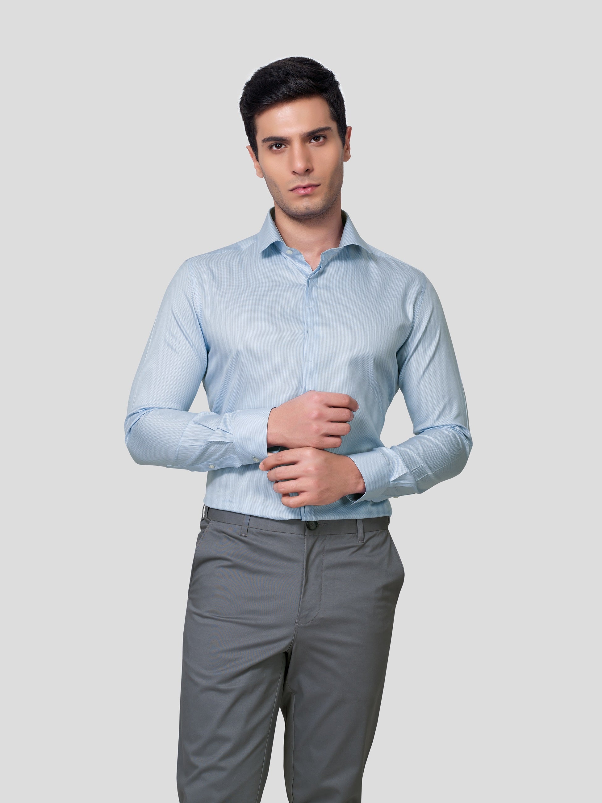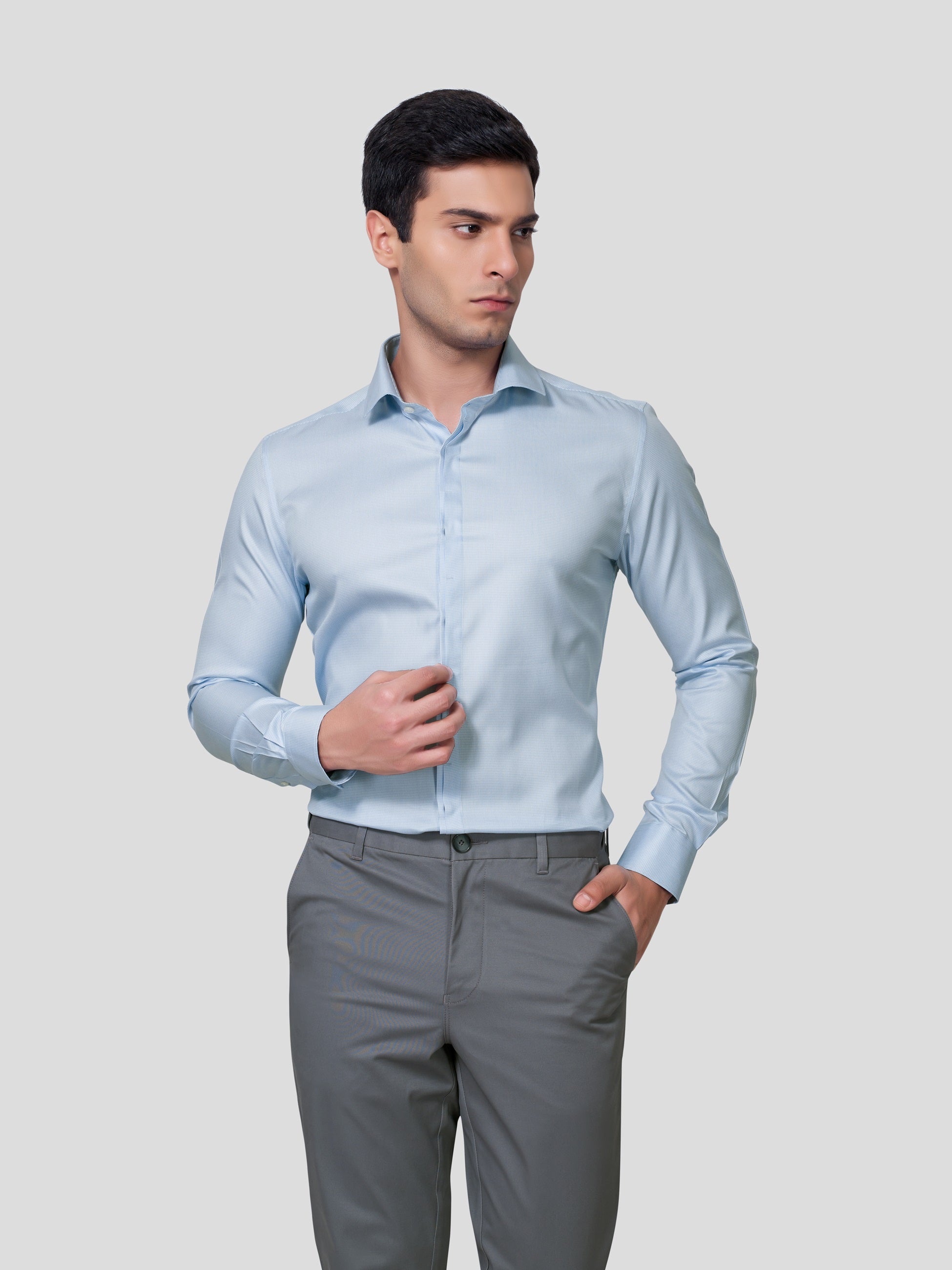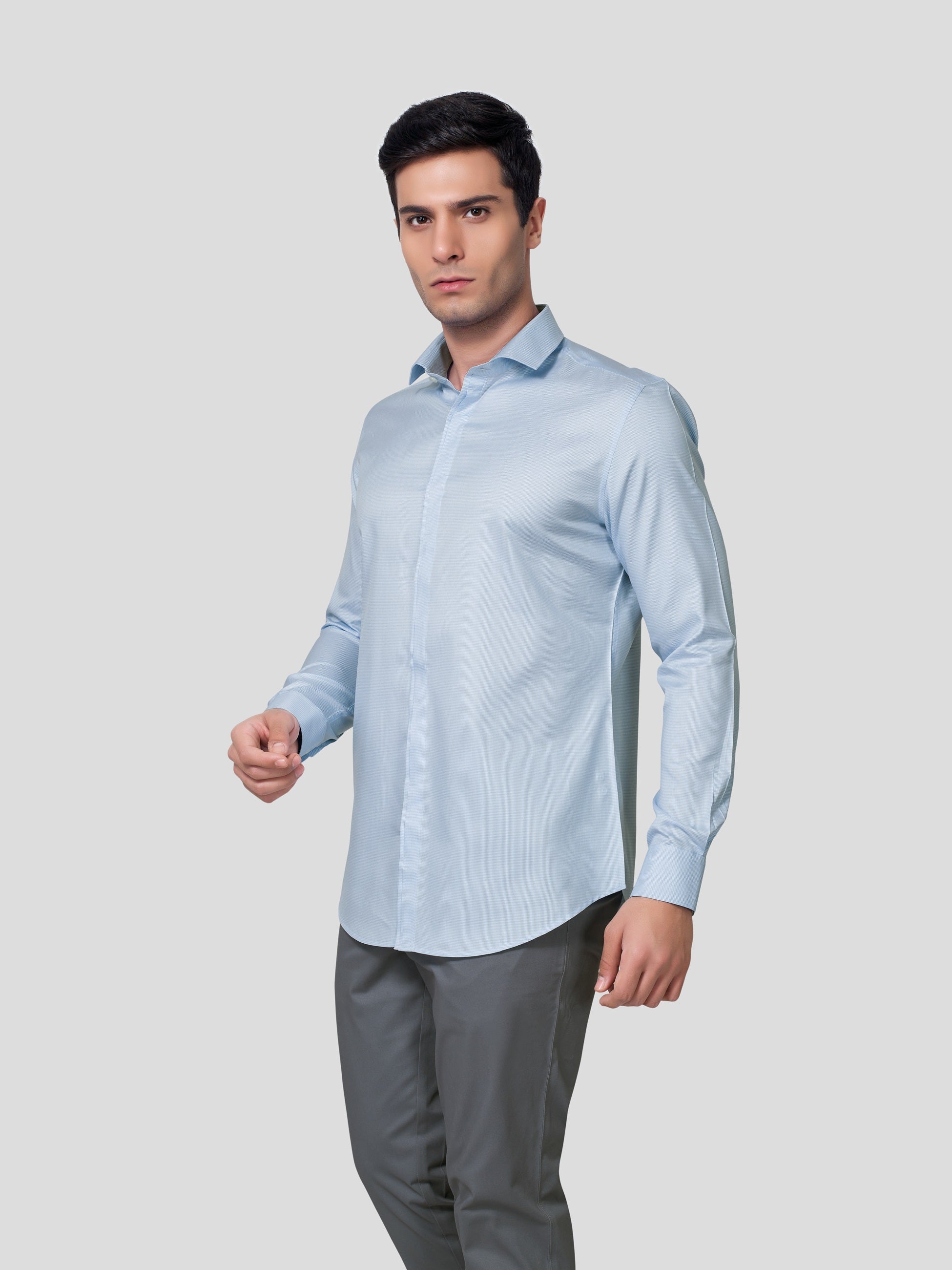 Ensure a magical impression at work in Numinous spread collar and concealed placket shirt, designed with nature’s vibrancy of yarn dyed 70s cotton. Crafted with piping and bar tack detailed concealed placket single button round cuff and imported imitation of mother of pearl buttons, this business formal shirt empowers you with leaderlike attitude. Now let your performance be super exciting in this responsibly fashionized workwear.