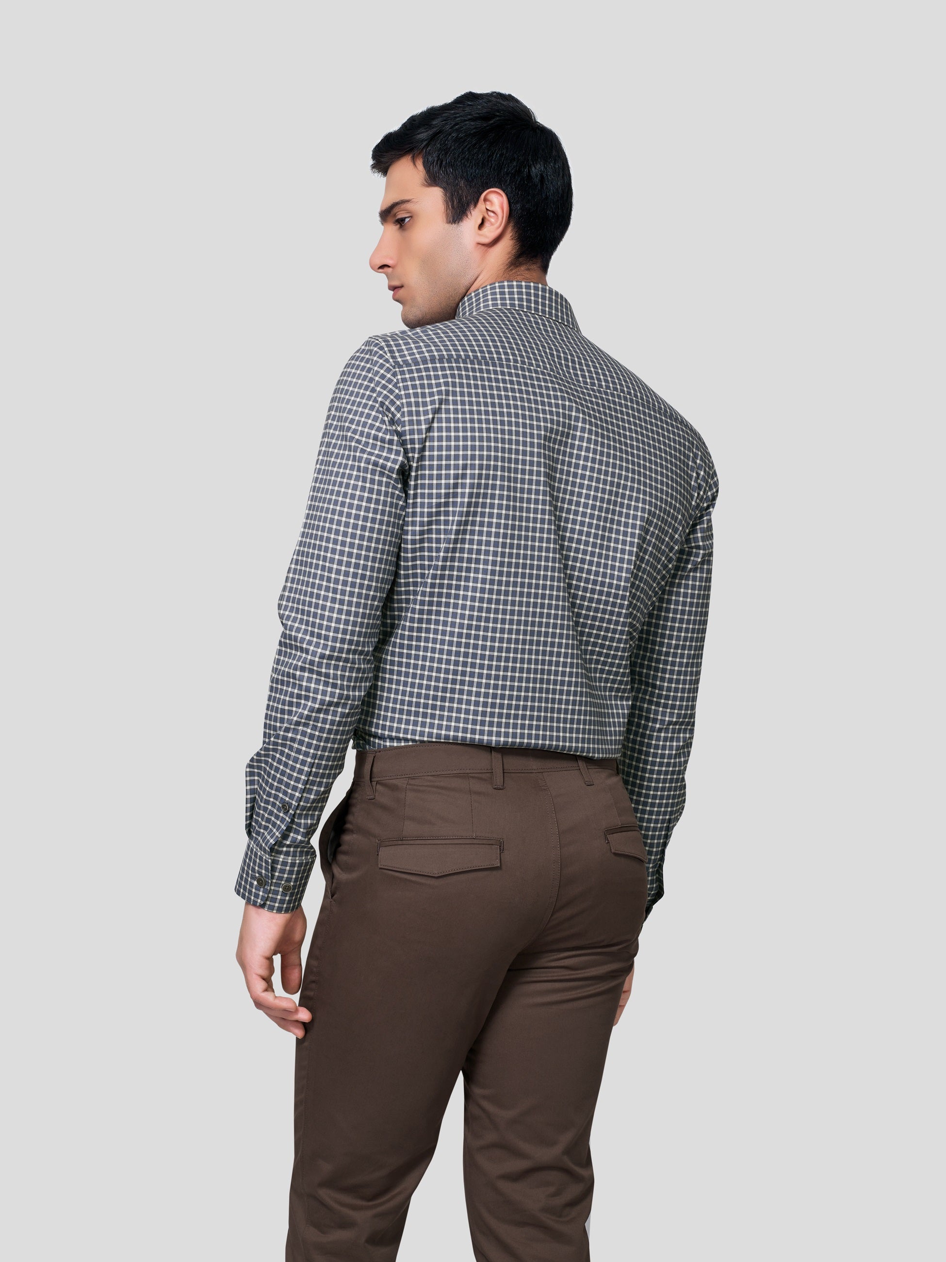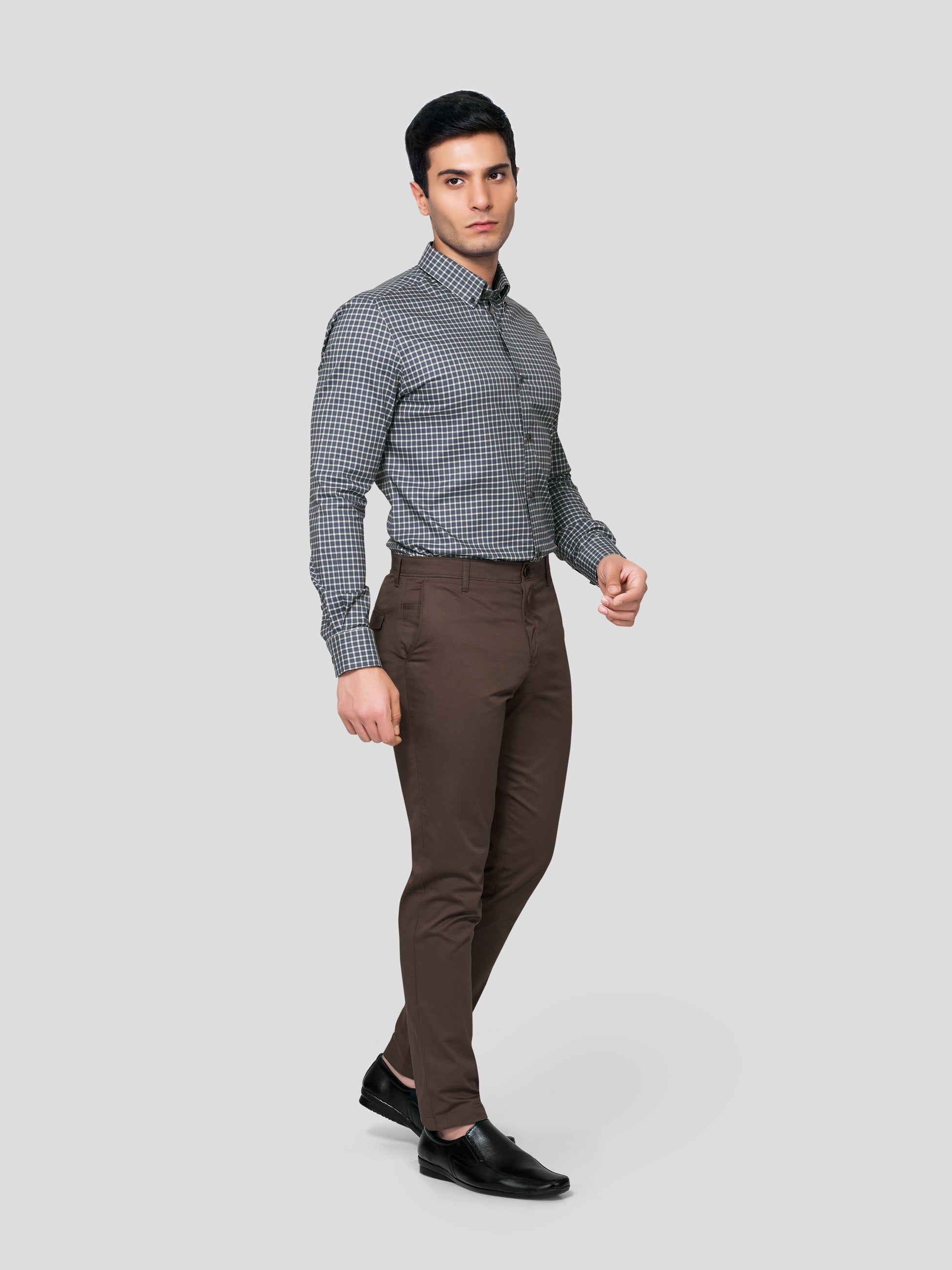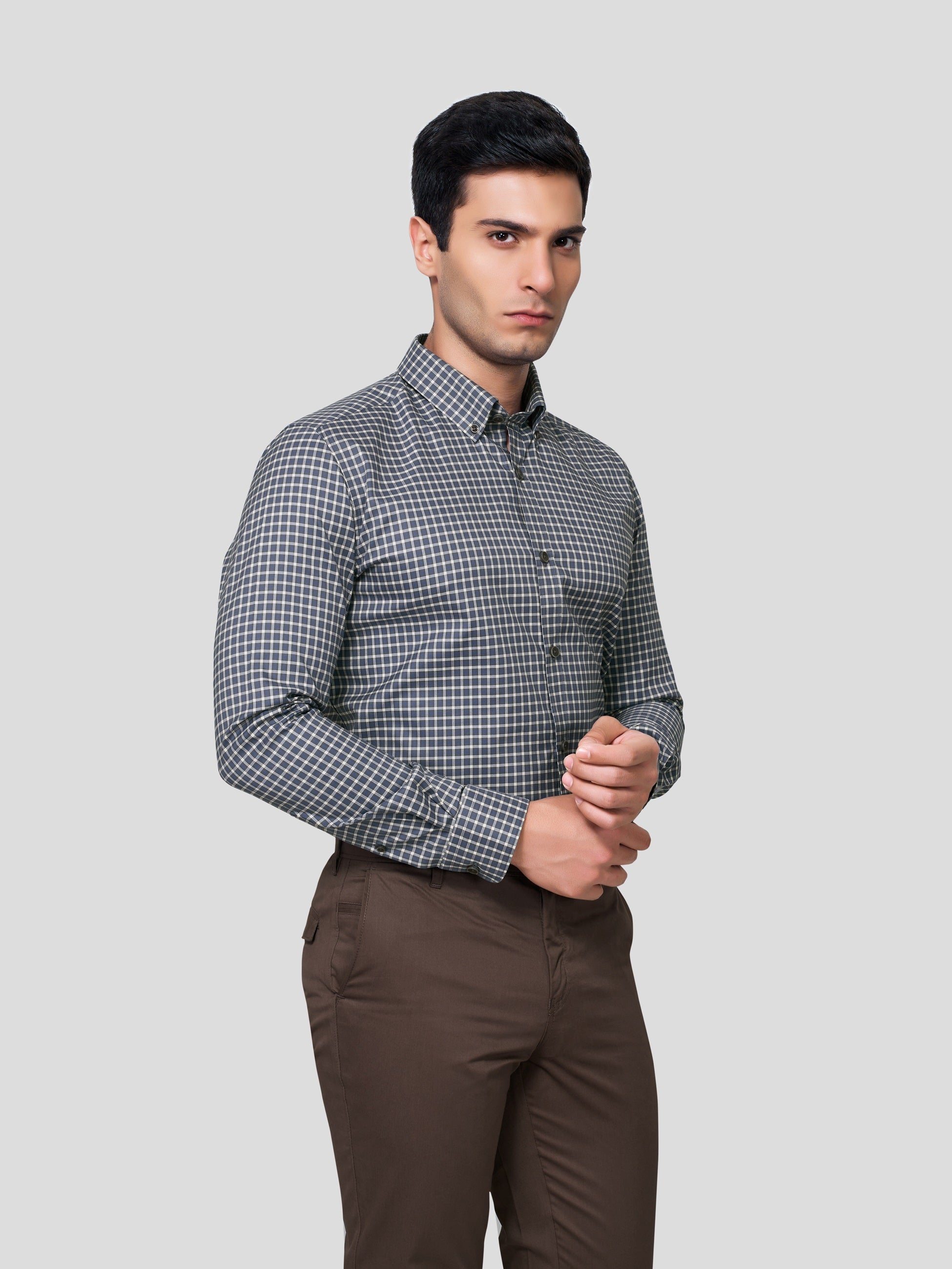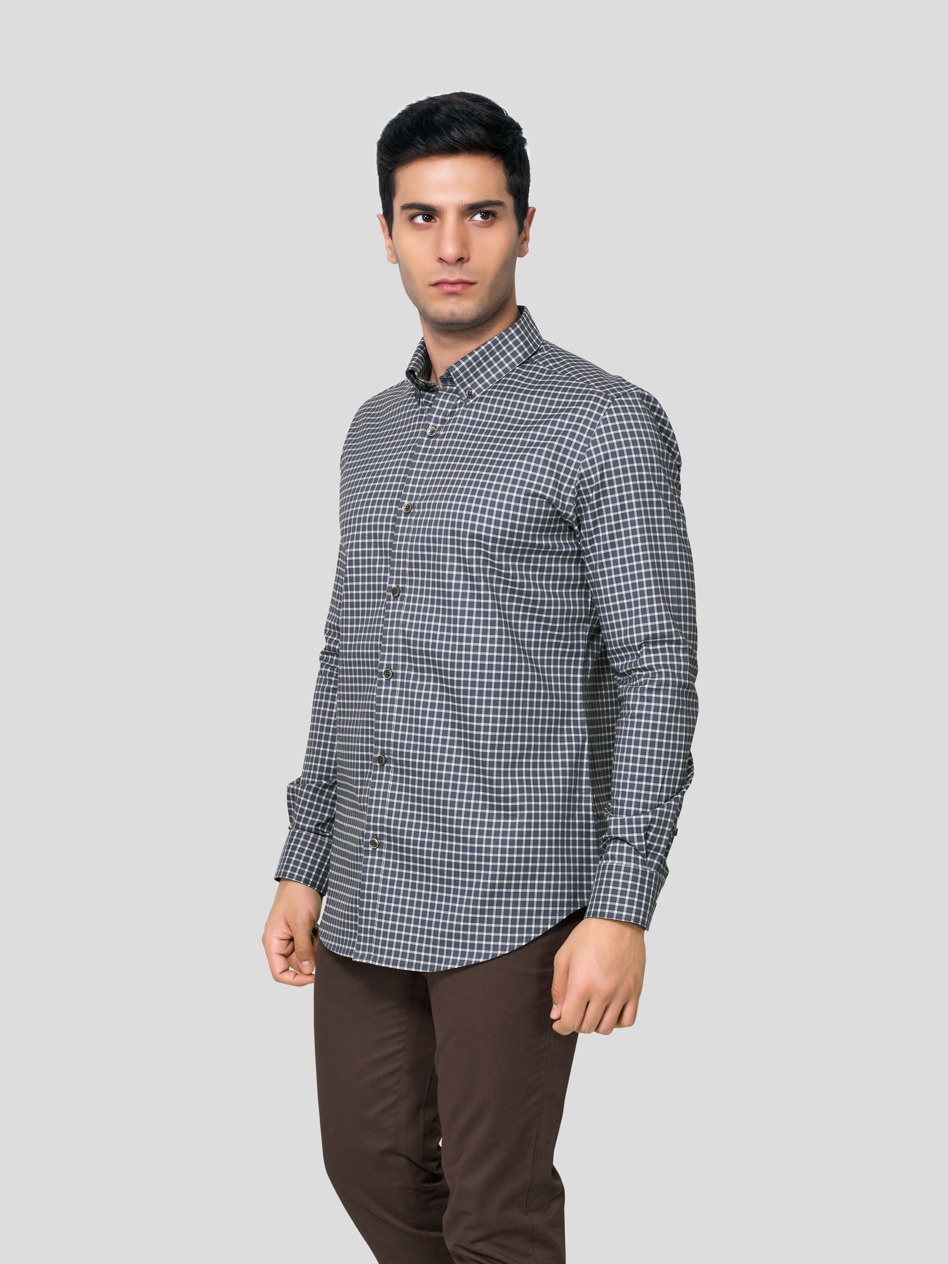 Geometric patterns display strategic attitude and button-down collar exhibits firmness of precision; our Scepter Button Down checker shirt has been designed with yarn dyed 50s cotton to fashionize your firm n’ strategic personality with nature’s vibrancy. Crafted with single button round cuff, American placket and contrasting imitation of mother of pearl shell buttons, this shirt smartly gives you a formal work look with achiever’s attitude.